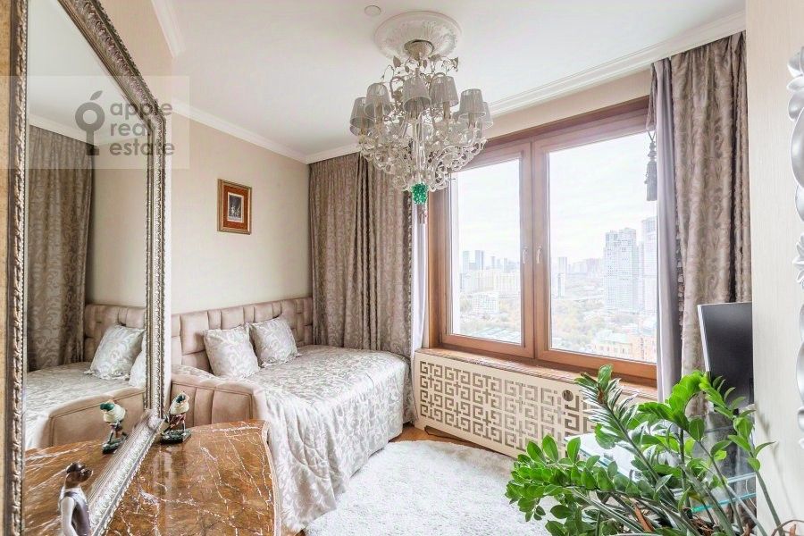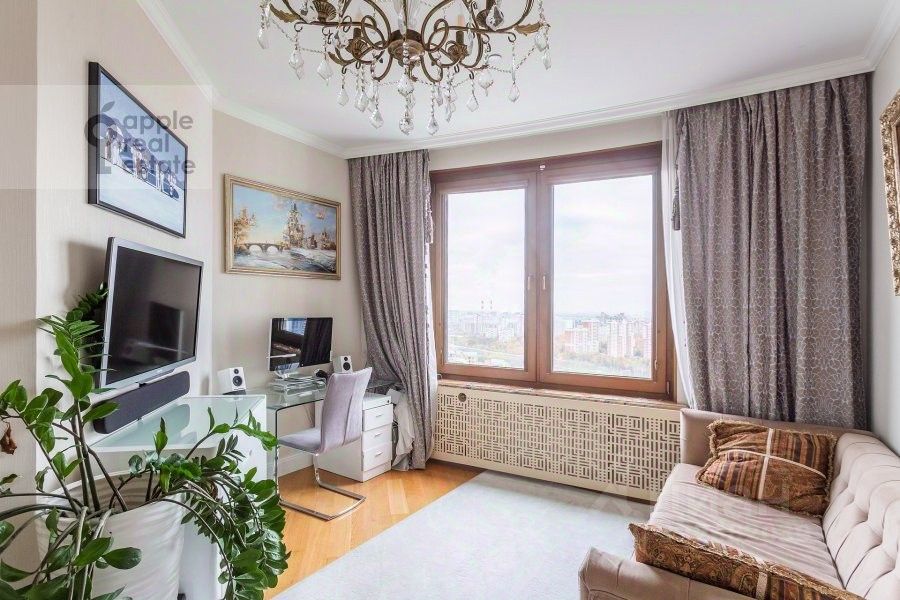 Стильная светлая квартира с идеально продуманной планировкой формат евро-5. Три изолированных спальни, кабинет и столовая-гостиная. Просторный мастер-блок с гардеробной и санузлом. Кабинет (потенциально может стать 4-й спальней) рабочее пространство с видом на город. Постирочная и две гардеробные — максимум удобства и порядка, и еще 2 санузла. 25-й этаж с потрясающей панорамой заката на юго-западе столицы.. В гостиной угловое остекление и широкий низкий подоконник для медитации на уходящее солнце. Отделка и интерьер в классическом стиле, ремонт свежий. Мраморные подоконники, столешницы, консоли. Итальянские хрустальные люстры. Паркет - розовый дуб. Атмосфера неги, роскоши, благополучия. Подземный паркинг с прямым доступом к лифтам. Охраняемая территория. Рядом с ЖК Мосфильмовский пруд, резиденции послов и Парк перед посольством КНР. До центра 15 минут на машине.
