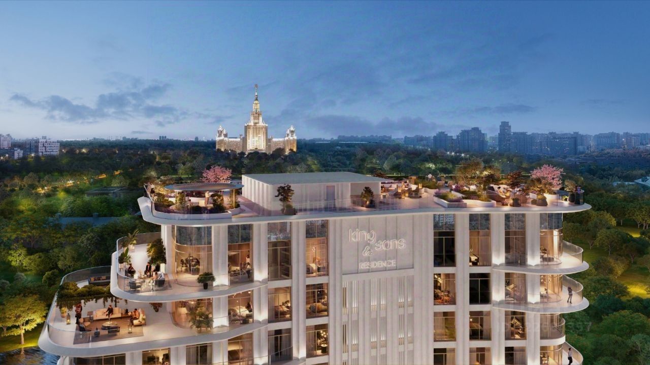 KING & SONS это клубный дом на 117 резиденций премиум-класса, расположенный на престижной и исторической улице Мосфильмовская. Из большинства квартир открываются панорамные виды на МГУ, ''Москву-Сити'', особняки посольств и парки. Это место для тех, кто не хочет выбирать между комфортом мегаполиса и уединением на природе.