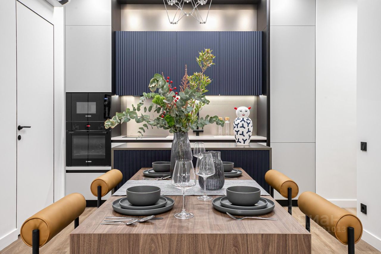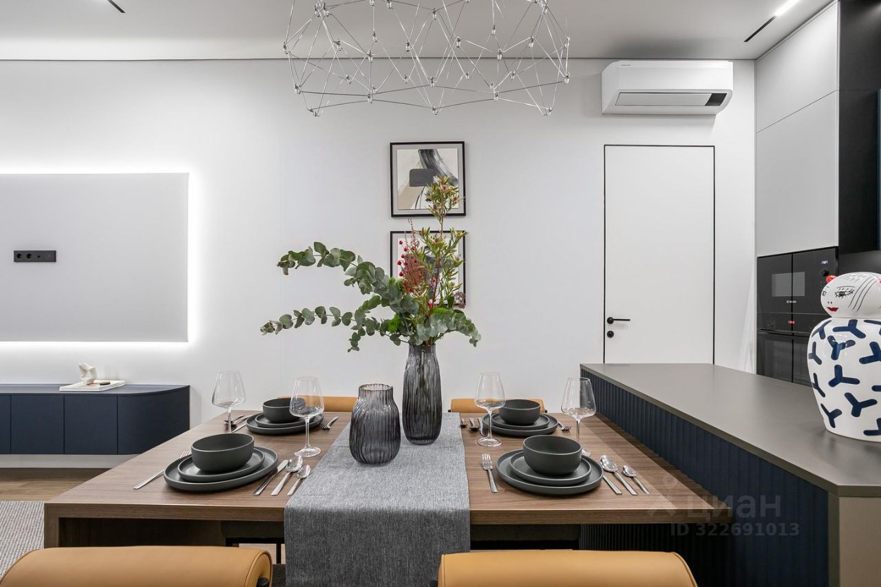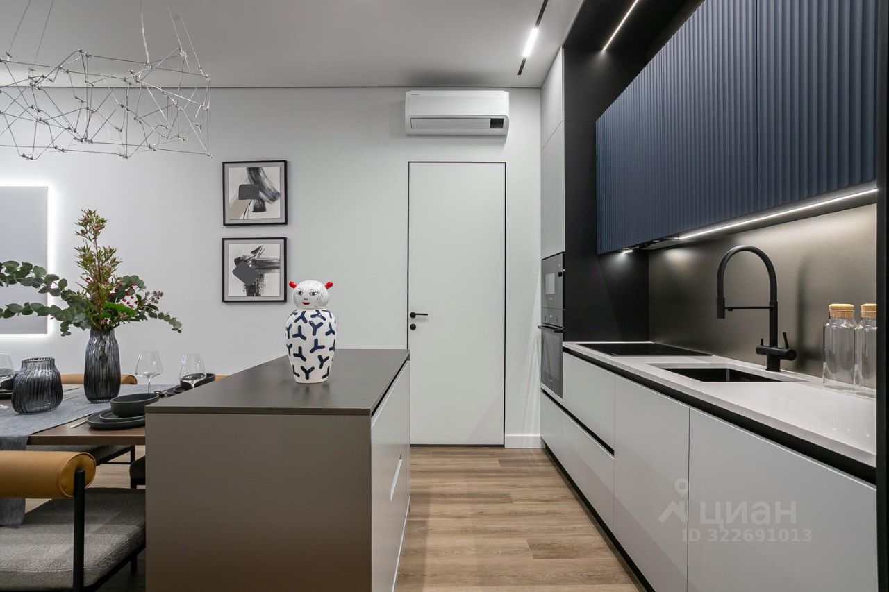 Продуманы удобные системы хранения, разведено канальное кондиционирование. Вся корпусная мебель выполнена на заказ из качественных материалов.