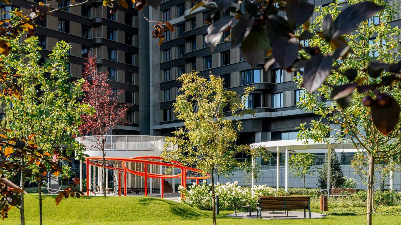 Главное о локации. Жители проводят утро в прогулке по ландшафтному парку ''Событие'' или по долине реки Раменки, которая начинается прямо у дома. Дети идут в частную школу-пансион МГУ или в школу 2025, малыши — в детские сады ''Детская страна'' и ''Крошка гений''. Днём удобно заглянуть во ''ВкусВилл'' или потренироваться в спортивной школе рядом. Вечером соседи встречаются в амфитеатре парка или на беговых дорожках. Район Раменки сочетает обширные зелёные территории и быстрый доступ к Мичуринскому проспекту и станции метро ''Мичуринский проспект'', всего в восьми минутах пешком.