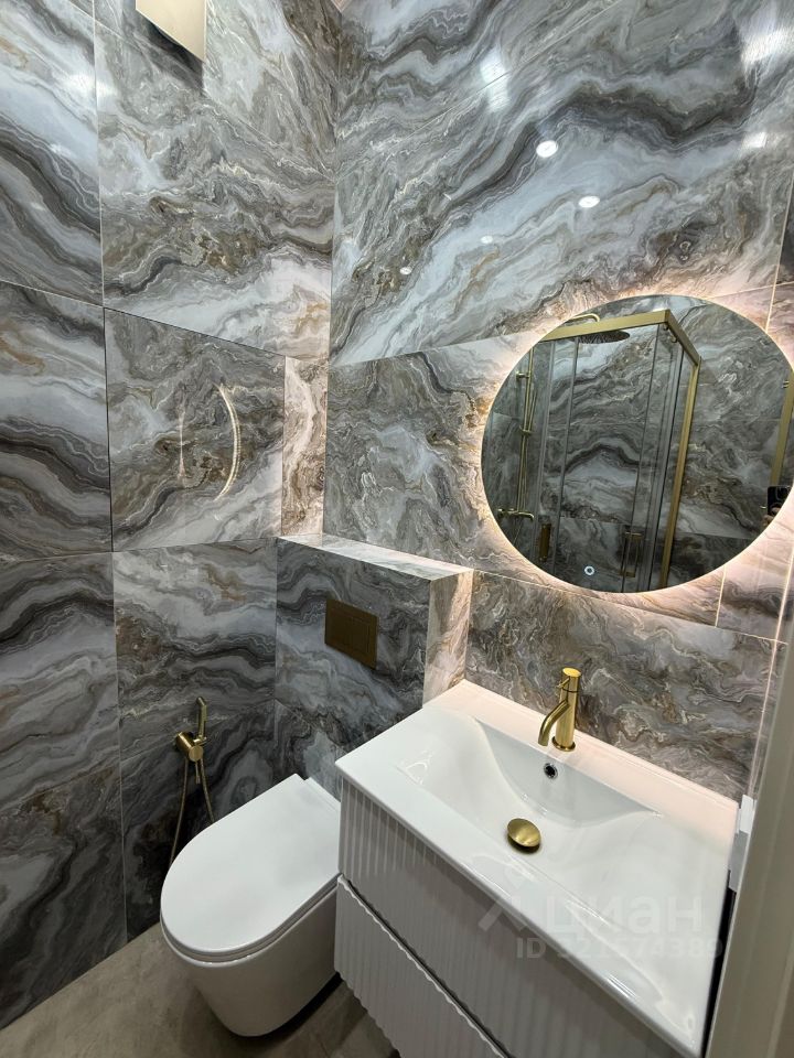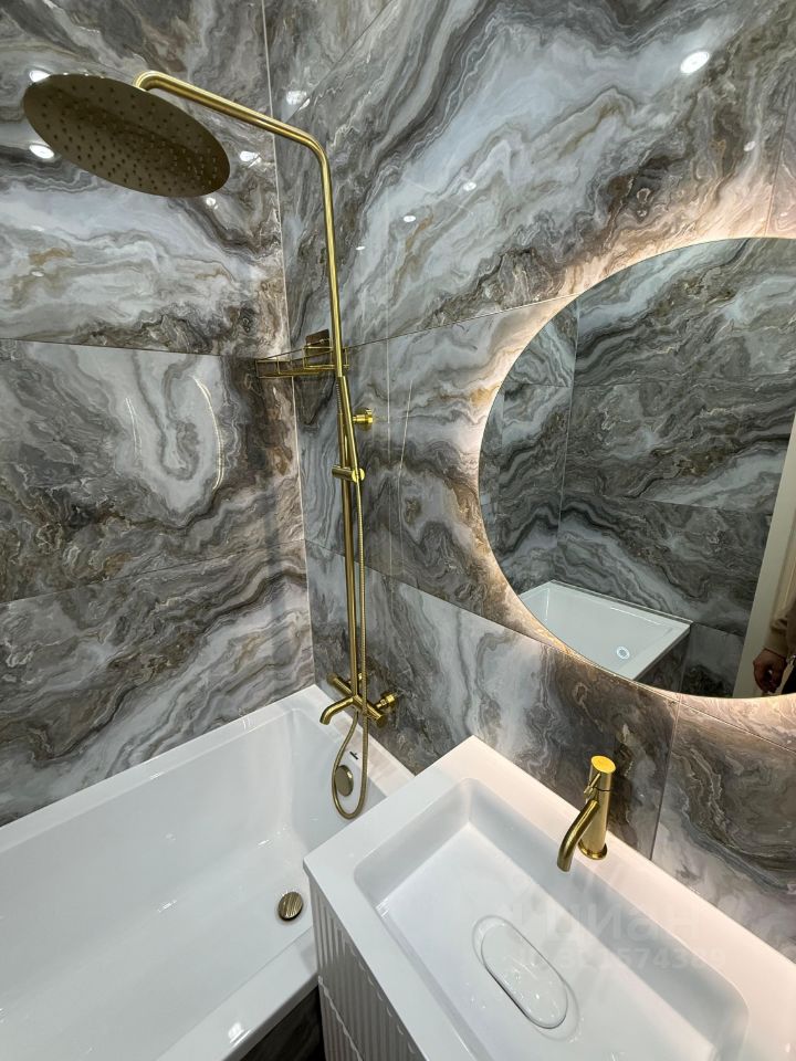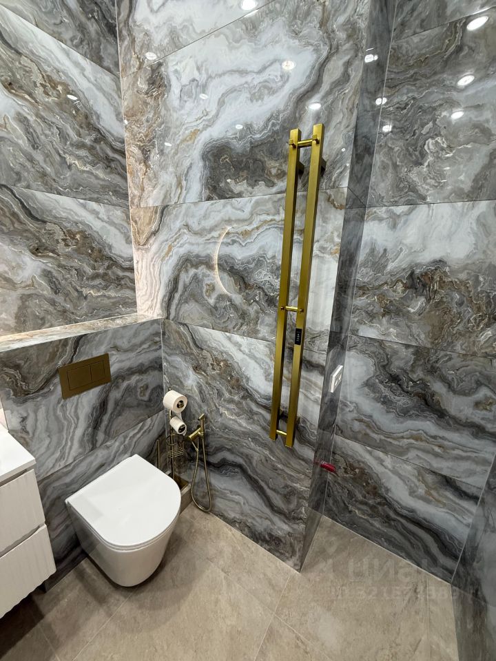 В квартире выполнен дизайнерский ремонт с использованием качественных материалов. Просторная кухня площадью 27 кв.м позволяет комфортно обустроить зону для приготовления и приема пищи. В наличии два совмещенных санузла, один с ванной, второй с душевой, что удобно для большой семьи или гостей.