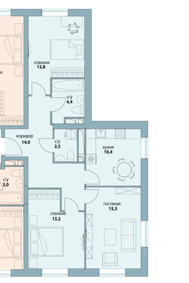 продам 3-к, Крузенштерна, 12 корп. 237 900 000 ₽