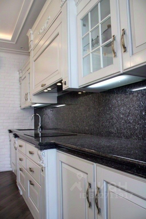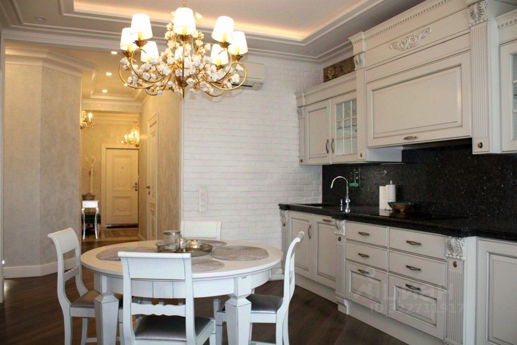 Кухня Scavolini — со столешницей и фартуком из натурального камня. Встроенная мебель, мягкая мебель и бытовая техника — также премиум-класса.