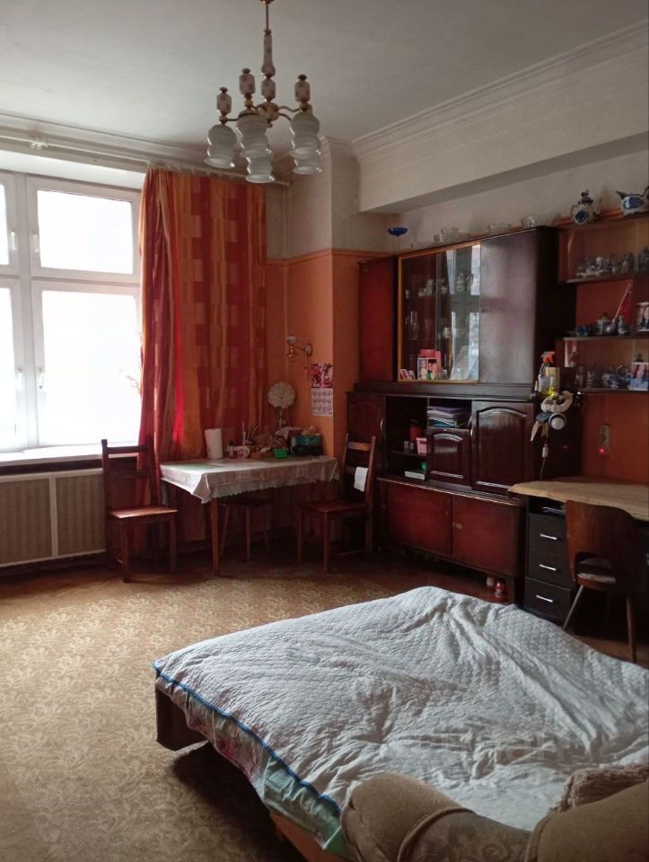 Арт. 119156146 Просторная квартира в фасадном сталинском доме в одной минуте ходьбы от метро Авиамоторная. Две большие комнаты с высокими потолками, одна с балконом выходит во двор, в другой - современная сплит-система.