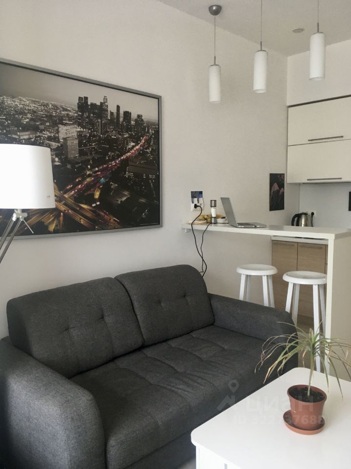 ///Про квартиру Верхний 5-й этаж (без лифта), зато потолки выше, чем у соседей — 3,2 м, ощущение простора и воздуха! Дизайнер продумал всё до мелочей: — отдельная зона спальни с кроватью 160 см, — гостиная с диваном и рабочим местом, — кухня с полным комплектом техники и встроенной колонной, — просторный совмещённый душ, — множество систем хранения и миллион розеток для комфорта, — продуманный зонированный свет, — и главное — огромное окно с видом на зелень и волшебные закаты