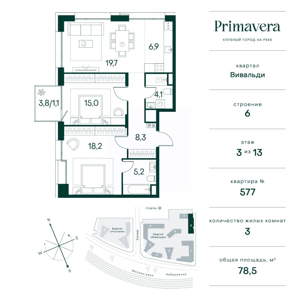 Клубный город на реке Primavera — это современный жилой комплекс премиум-класса, расположенный на первой береговой линии Москвы-реки в экологически чистом районе Покровское-Стрешнево.
