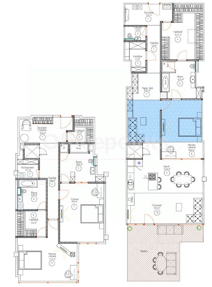 Помещение без ремонта, открытая планировка. Панорамные окна. Приточно-вытяжная система вентиляции, центральная система кондиционирования. Наземная парковка. На фото представлены рендеры.