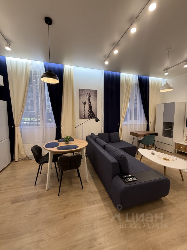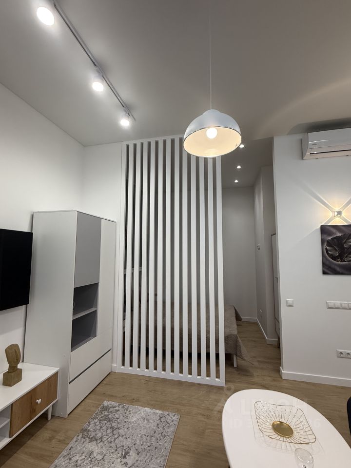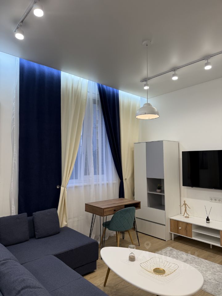 Квартира с дизайнерским ремонтом и обставлена современной мебелью и техникой. В комнате и на кухне есть всё необходимое для комфортного проживания. Установлена современная техника: кондиционер, холодильник, посудомоечная машина, телевизор и стиральная машина. Окна выходят на закрытый двор с большим количеством зеленых насаждений, поэтому в квартире тихо и уютно.