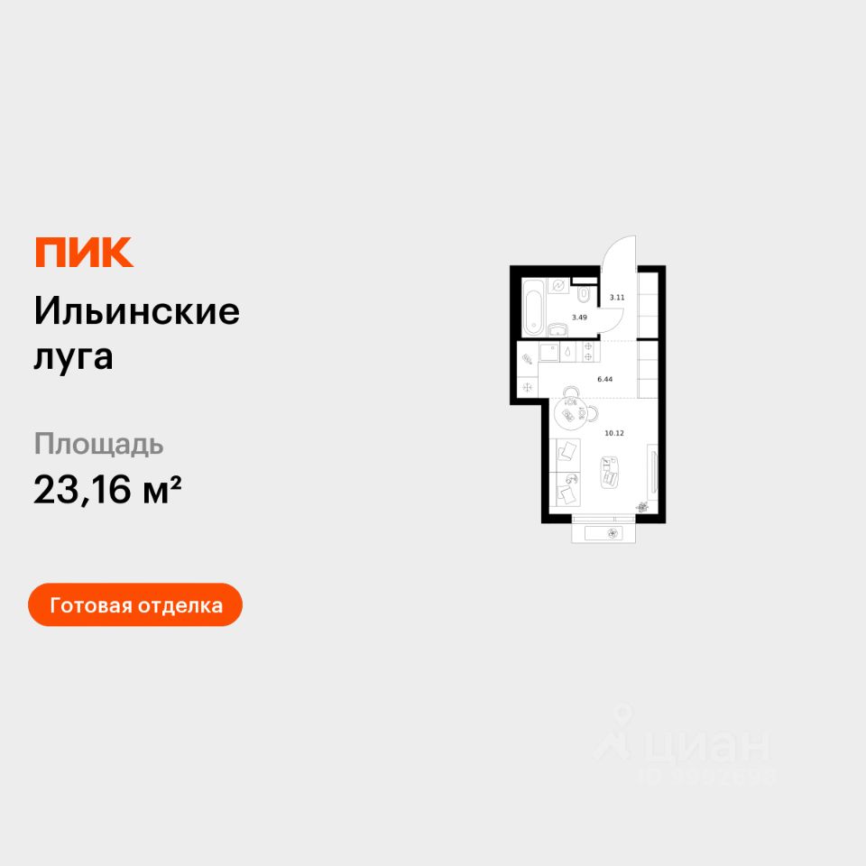 Продаётся квартира-студия площадью 23,16 кв.м на 2 этаже 9 этажного дома (Корпус 4.1, Секция 2) проекта ПИК Ильинские луга. Светлый просторный подъезд на уровне земли, функциональная планировка, большие окна, c отделкой.