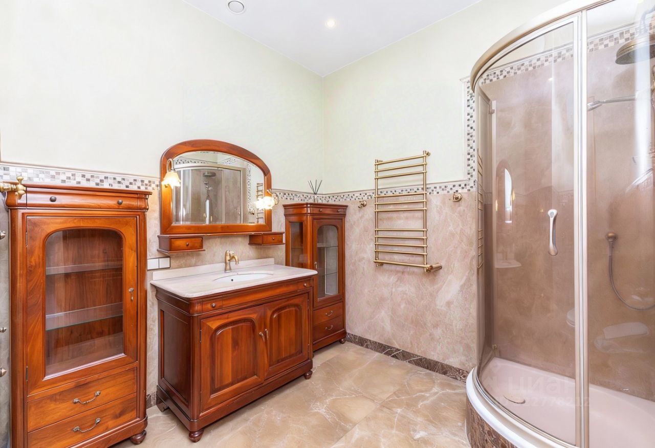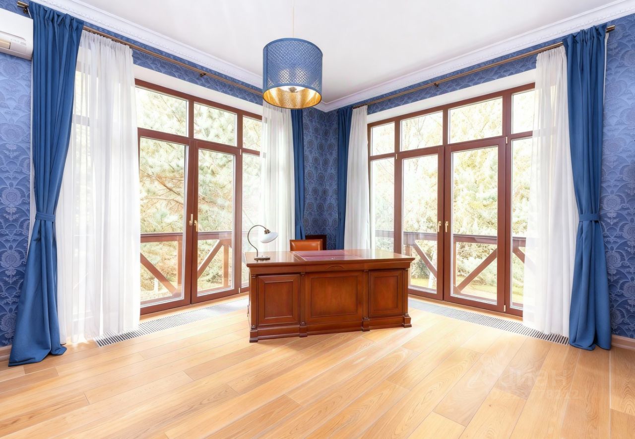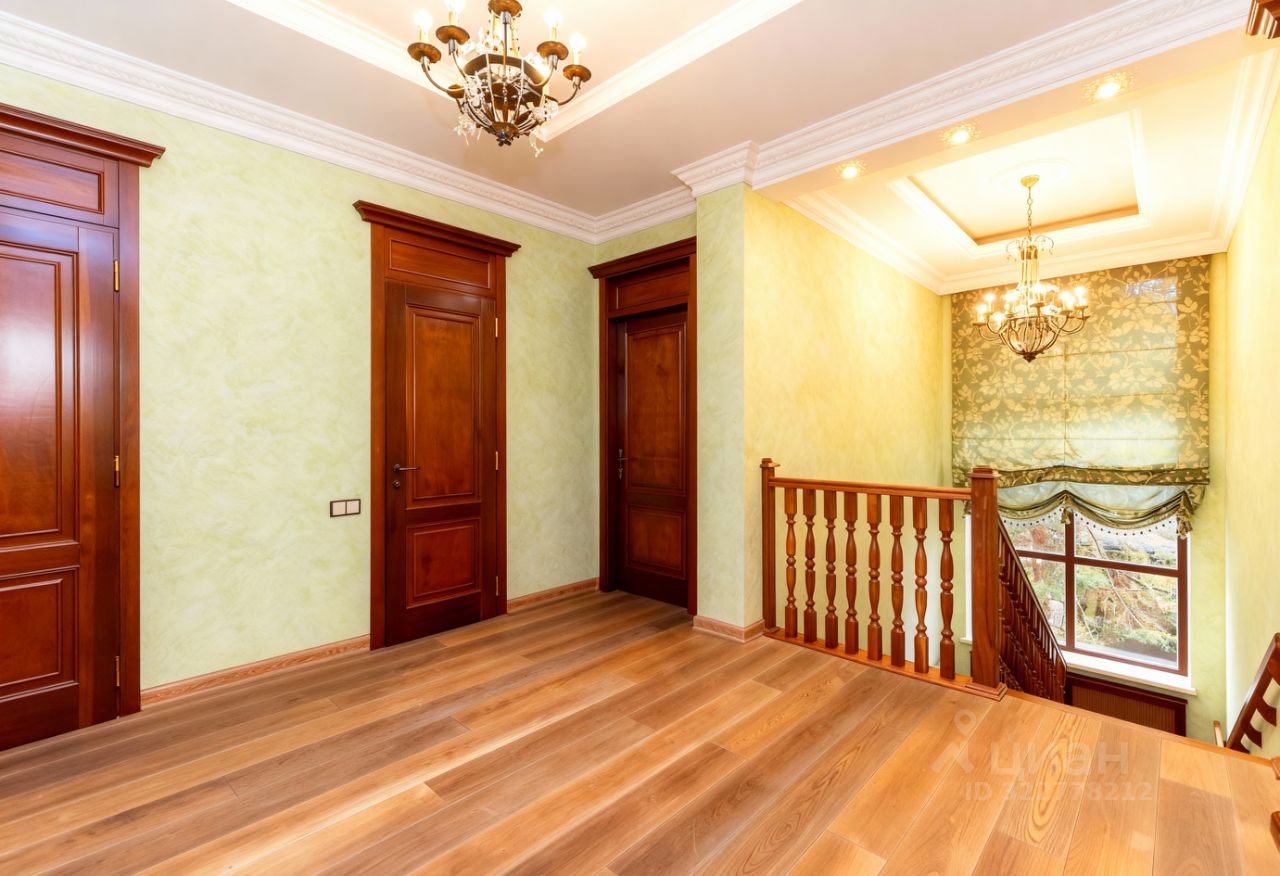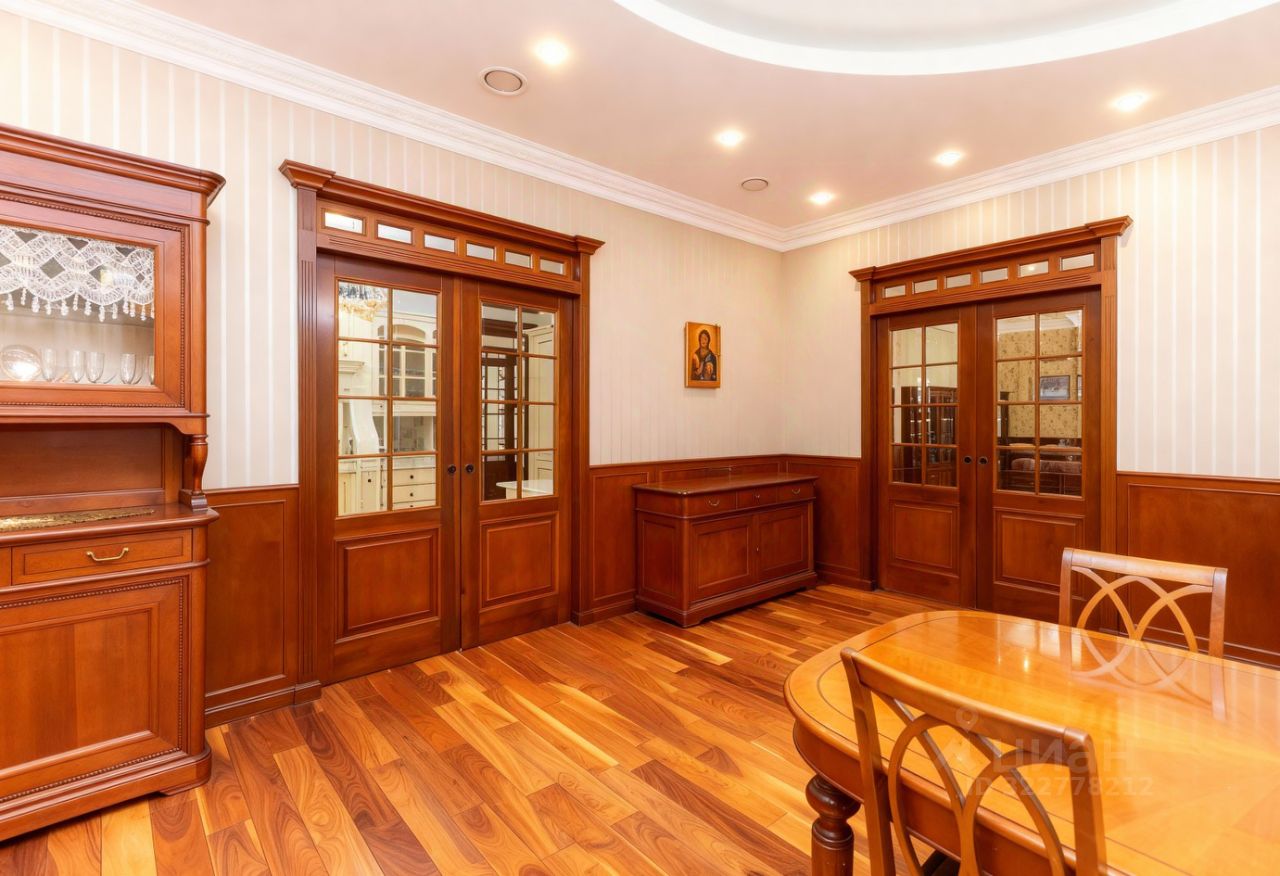 Преимущества: — Интерьер выполнен в классическом аутентичном стиле с эксклюзивной итальянской мебелью, — Панорамные окна и эркеры наполняют пространство обильным светом и теплом, — Гостиная и кухня-столовая формируют уютное пространство площадью 93 м², — Рациональная, продуманная планировка — идеальна для жизни с детьми, — На участке — полный комплекс зданий для по-настоящему комфортной загородной жизни.