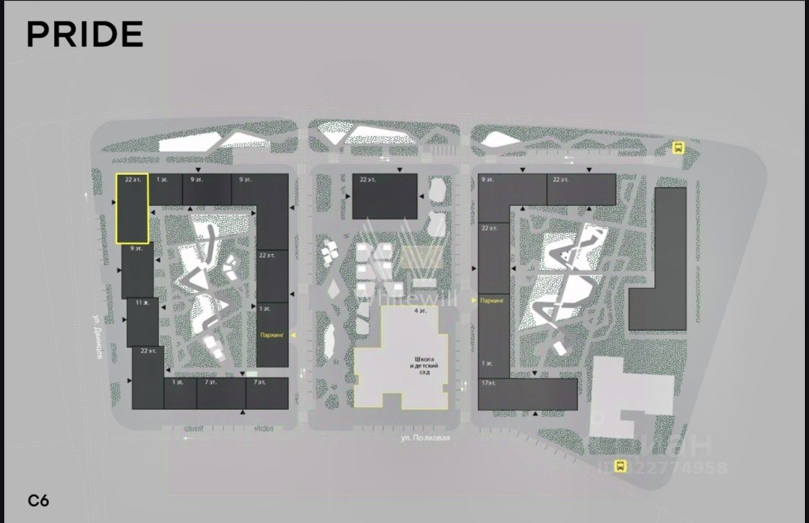 Главное о доме. PRIDE — квартал у Цветного бульвара. Дома разной высоты формируют приватные дворы и пешеходный променад со спортивными и детскими площадками. В лобби — камень, высокий потолок, стойка ресепшн и мягкие кресла. На первых этажах работают кафе и повседневные сервисы. В состав квартала включили школу и частный детский сад.