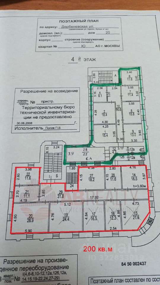 2 и 4 этажи - два офиса площадью по 200 кв.м. В офисах свои санузлы и зоны под кухню. Балкон. Светлые помещения с окнами. Высокие потолки 3,6 м.