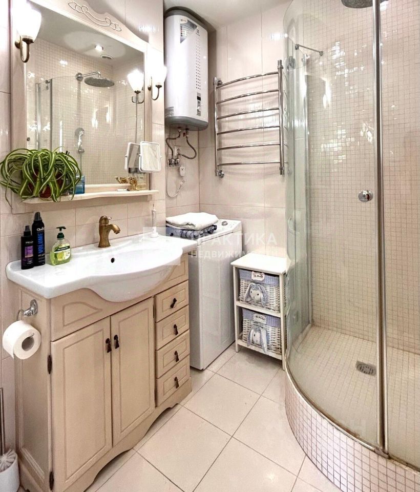 Двенадцать лет назад в квартире был произведен капитальный ремонт с заменой электрики, окон, полов, сантехники. Санузел совмещенный, просторный с душевой кабиной, полы на кухне и ванной - плитка с подогревом, в комнатах ламинат, кухня встроенная, фасады из натурального дерева в очень хорошем состоянии, есть встроенные шкафы в прихожей и одной из спален, кондиционер. Время идет, дизайнерская мысль развивается, можно все переделать в своем вкусе и стиле.