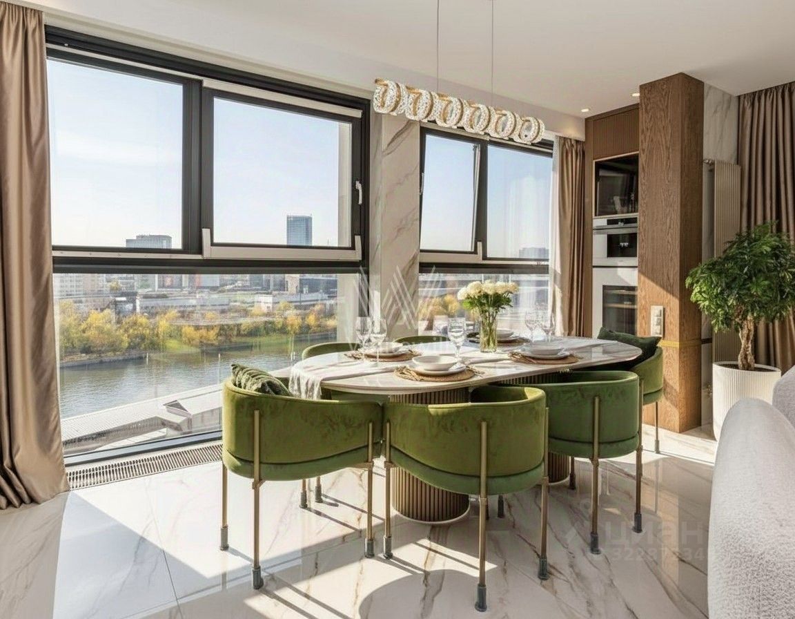 Квартира полностью меблирована и укомплектована бытовой техникой. Функциональная планировка включает гостиную с камином и домашним кинотеатром, кухню, мастер-спальню с собственной ванной комнатой, гардеробной и выходом на балкон, две спальни, санузел с душевой кабиной и холл. Благодаря панорамному остеклению пространство наполнено естественным светом и теплом, открываются виды на город и Москву-реку. В наличии паркинг, входит в стоимость.