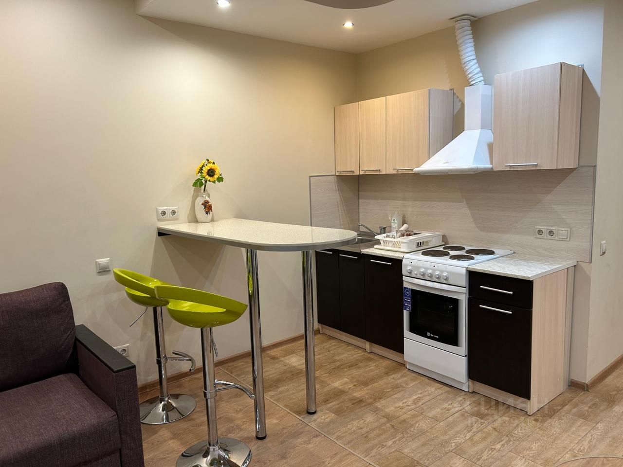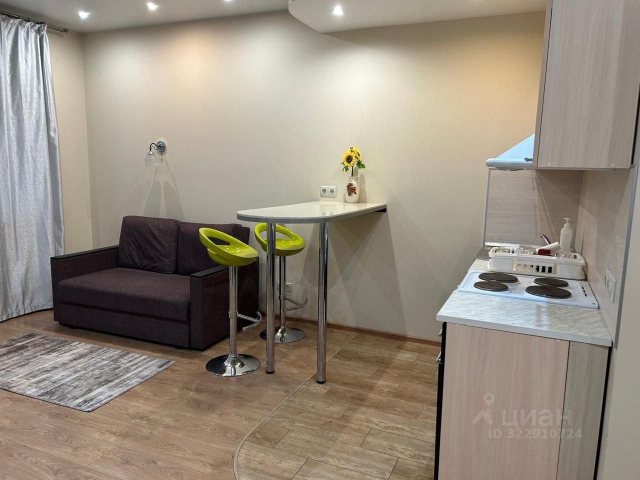 ЖК Одинбург. Сдаётся студия 32 метра на длительный срок. В квартире: диван, шкаф, барная стойка, холодильник, стиральная машина.