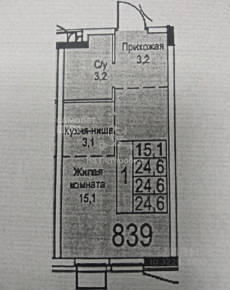 Id 20887. Собственность получена. Продаётся студия-апартаменты в строящемся доме , секция 5, с общей площадью 24,6 кв.м., на 3 этаже . Окна во двор. Без отделки.