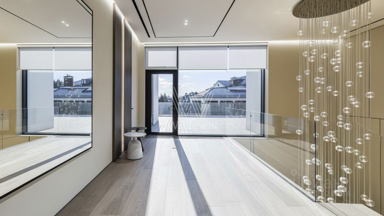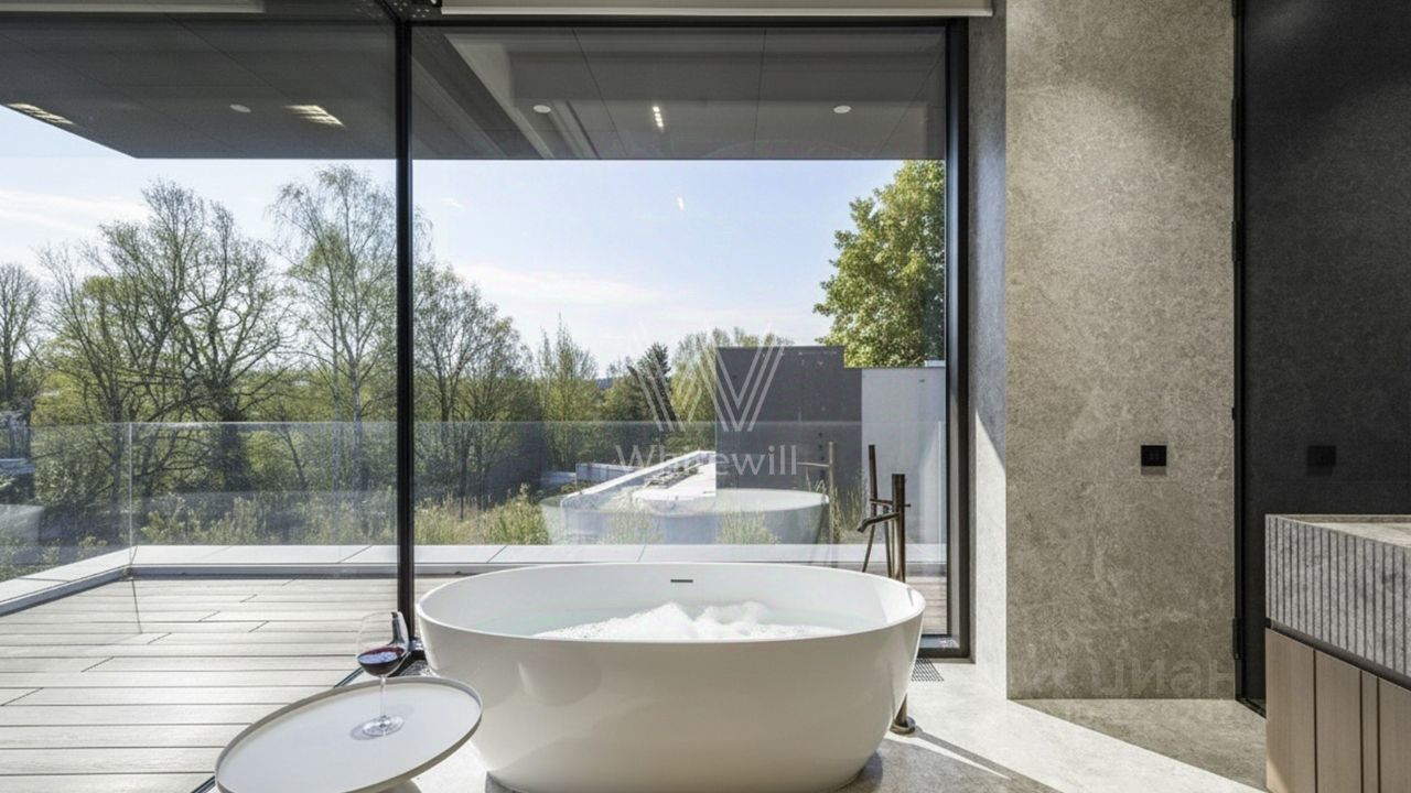 Современная архитектура, большие панорамные окна, гармоничные линии фасада и дизайнерская премиум-отделка внутри. Натуральные материалы, мягкий свет, камень, дерево и металл в идеальном балансе создают атмосферу современного спокойствия и статуса.