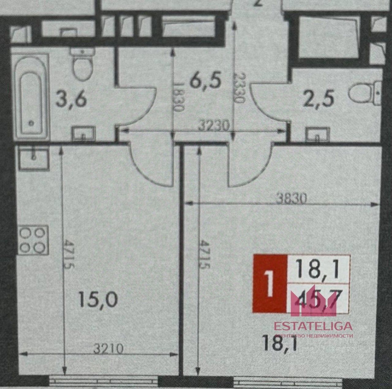 Этаж: 8 Площадь: 46 м²