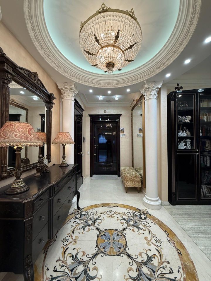 Предлагается в продажу квартира в жилом комплексе ''Гранд-Парк'' (огороженная и охраняемая территория, подземный паркинг). Дорогой дизайнерский ремонт делался для себя. Планировка: гостиная, 2 спальни, кухня, лоджия (сделанная как маленькая комната), 2 гардеробные, 2 санузла (в первом-ванная Jacuzzi с гидромассажем, биде, во втором-душевая кабина), постирочная, помещение для кондиционеров, где установлены внешние блоки мульти-сплит системы Mitsubishi Electric . Бытовая техника от лучших импортных производителей: стиральная, посудомоечная машины, духовая печь, микроволновая печь и варочная электроплита Miele. Сантехника от оригинальных производителей премиум класса: унитазы VilleroyBoch, ванна Jacuzzi, смесители с хрусталем Swarovski. Мебель и двери от фабрик премиум класса с мировым именем: кухня с полуостровом, 3 барными стульями из натуральной крокодиловой кожи и комодом с большим зеркалом Turri, двери и встроенная мебель библиотеки Мекран, большой диван в гостиной AlbertShtein и т.п. На полу натуральный наборный мрамор в холле при входе, в гостиной, спальнях и коридорах паркетная доска с позолоченным оттенком. В лифтовом и при квартирном холле сделан дизайнерский ремонт с элементами декора и подсветками. Свободная продажа, 1 взрослый собственник. В собственности более 15-и лет. Развитая инфраструктура. Звонить можно с 9.00 до 24.00 ежедневно. Огромная просьба, если возникают вопросы по объявлению, пожалуйста звоните, а не пишите сообщения!