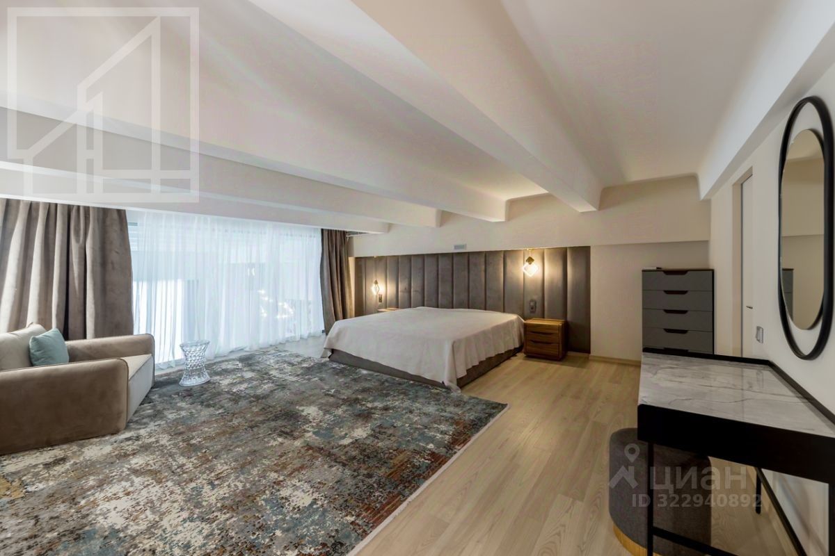 Планировка: 1-ый уровень: холл, гостевой санузел, гардеробная с подсобным помещением, спальня с санузлом, кухня. Зал с обеденной зоной, 2-ой уровень: спальня с санузлом и большой гардеробной, зона свободного назначения. Квартира меблирована, укомплектована необходимой бытовой техникой. Высокие потолки, панорамное остекление. Окна выходят в благоустроенный внутренний двор.