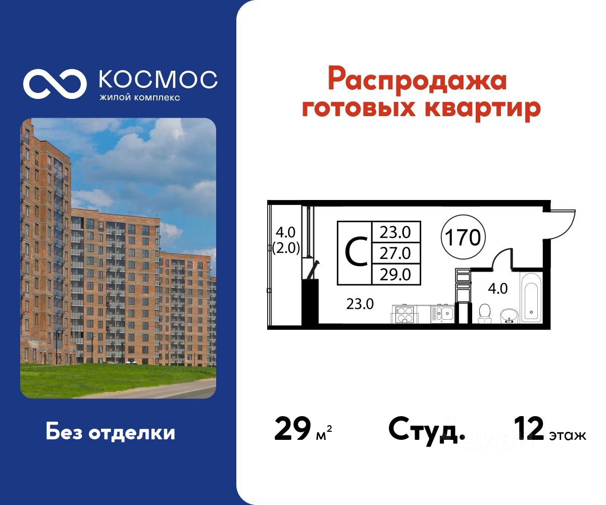 Продаётся студия в сданном доме (Корпус 7), срок сдачи: 2-кв. 2025, общей площадью 29.00 кв.м., на 12 этаже.