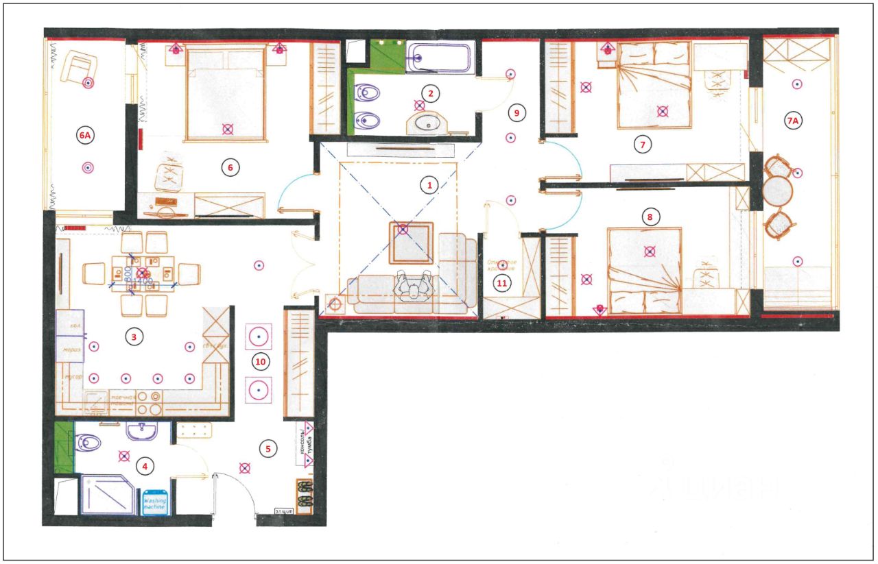 Бытовая техника: Холодильник, Посудомоечная машина, Стиральная и сушильная машины, Кондиционер.