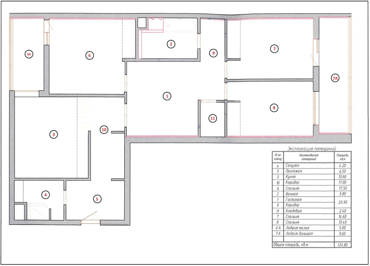 Площадь комнат: 20,9-17,5-14,6-13,4 м²