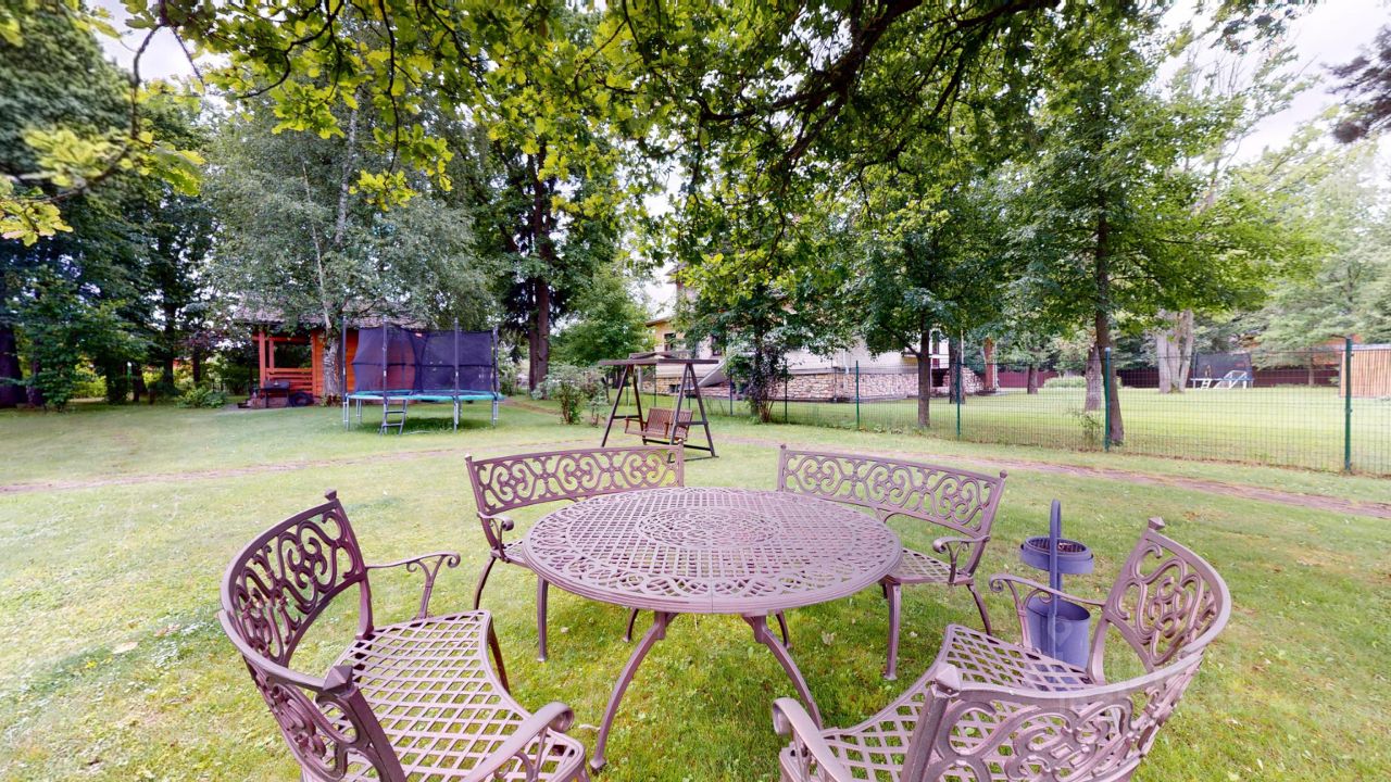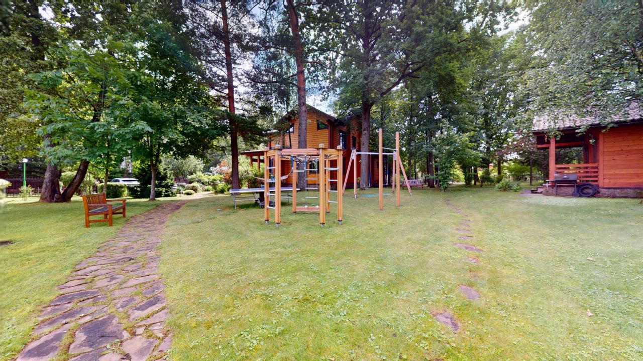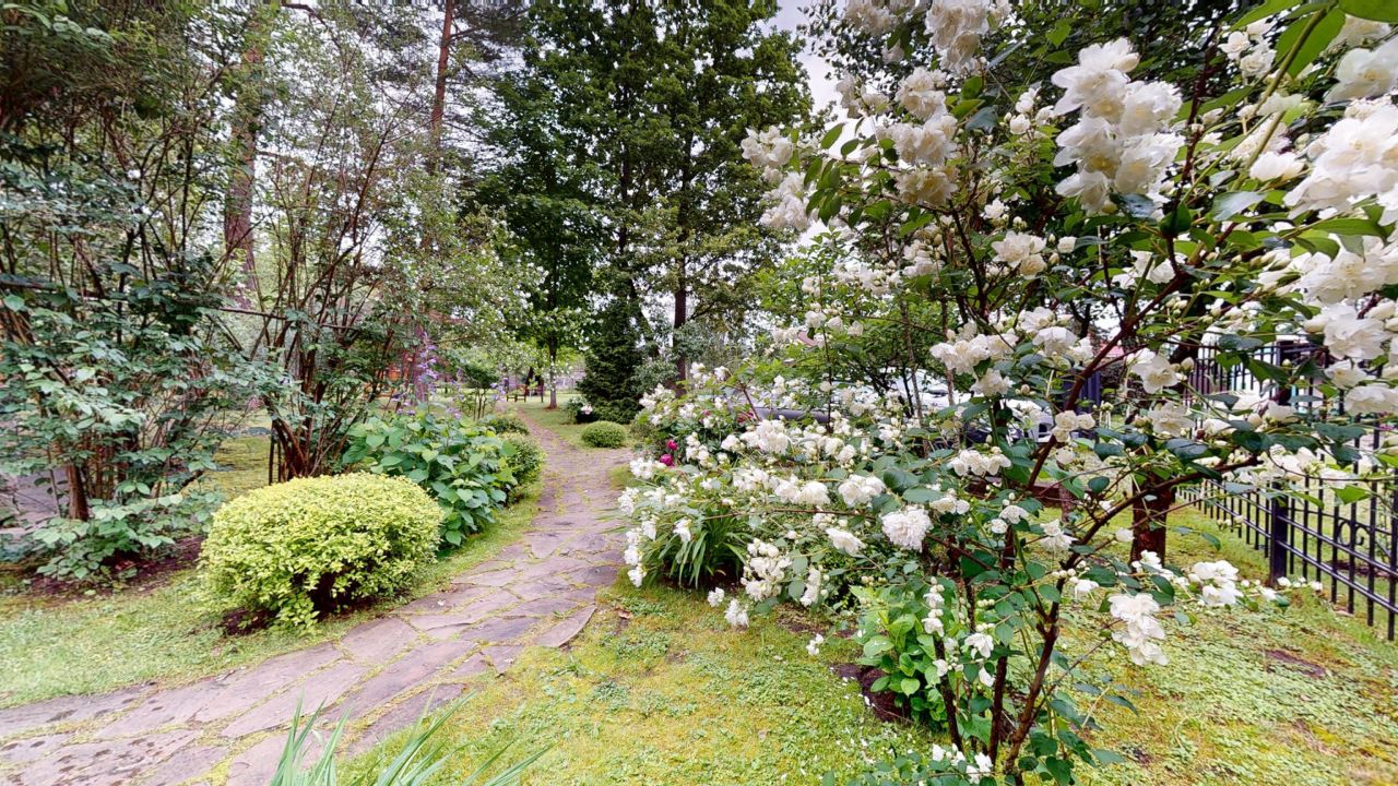 Прекрасный участок 40 соток, с множеством взрослых деревьев, бегают белочки, прекрасный ландшафтный дизайн с зоной отдыха у бассейна, дорожки из натурального камня среди вековых сосен. Игровая площадка, батут, теннисный стол и качели для досуга детей. Есть отличная возможность построить домик на дереве.