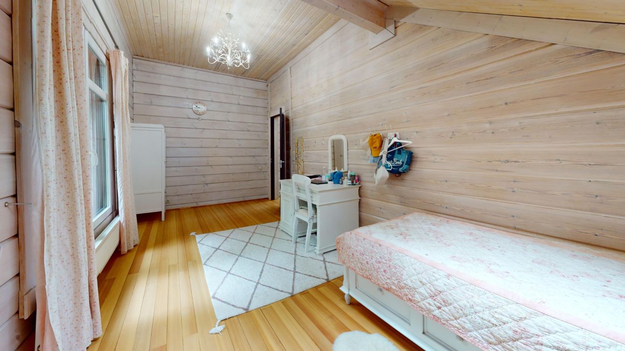 - второй этаж полностью хозяйский: большая гардеробная 8 кв.м, ванная 9 кв.м, две спальни 14,5 и 18 кв.м, одна из которых выполнена детским архитектором Юрием Сырковым, мастер-спальня 19 кв.м с балконом, гардеробной 8 кв.м и ванной комнатой 6 кв.м, есть чердак.
