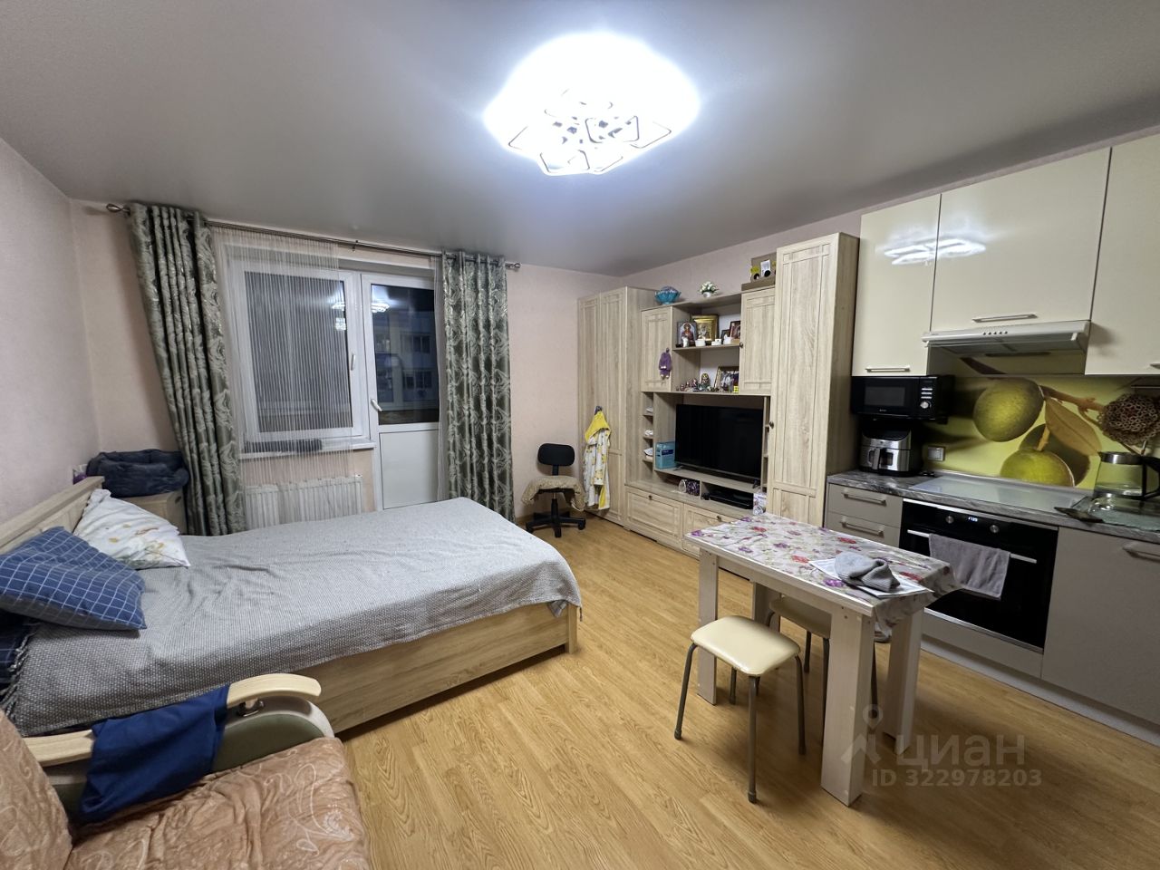 Студия просторная, светлая с балконом, хорошим косметическим ремонтом, всей мебелью и бытовой техникой (оставляем по договоренности)