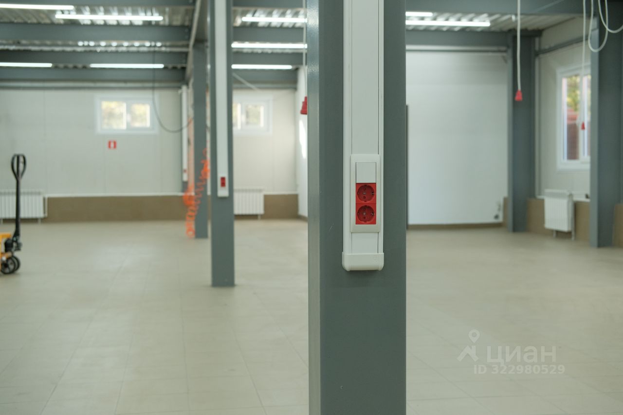 Планировка свободная, шаг колонн 6х6 метров, потолки выше 3 метров. Внутри помещения размещены офис для менеджеров и санузел - всё остальное пространство свободное, без перегородок. Выведено много много розеток, энергомощность на всё здание 150квт.