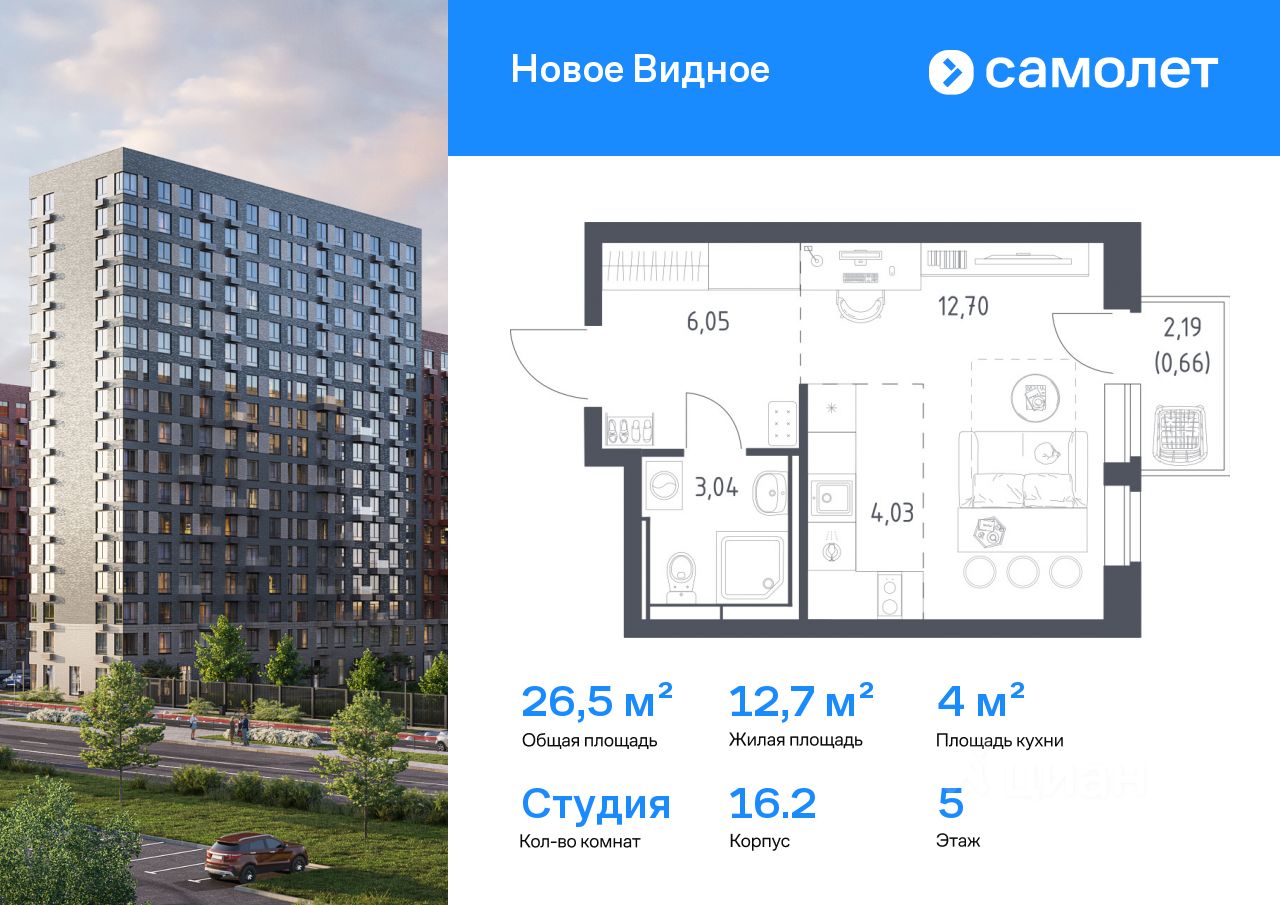 Строим кварталы для жизни с заботой о будущем. Предлагается квартира студия комфорт-класса 26,48 кв.м в корпусе 16.2 на 5 этаже, в ЖК ''Новое Видное'' Квартира с чистовой отделкой. Доступность дополнительных опций уточняйте у застройщика.