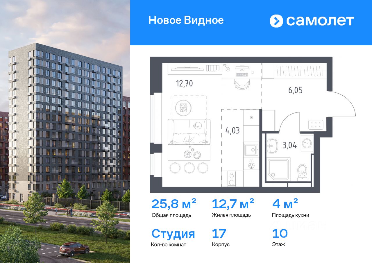 Строим кварталы для жизни с заботой о будущем. Предлагается квартира студия комфорт-класса 25,82 кв.м в корпусе 17 на 10 этаже, в ЖК ''Новое Видное'' Квартира без отделки. Доступность опции ''отделка'' и возможность комплектации мебелью и декором уточняйте у застройщика.