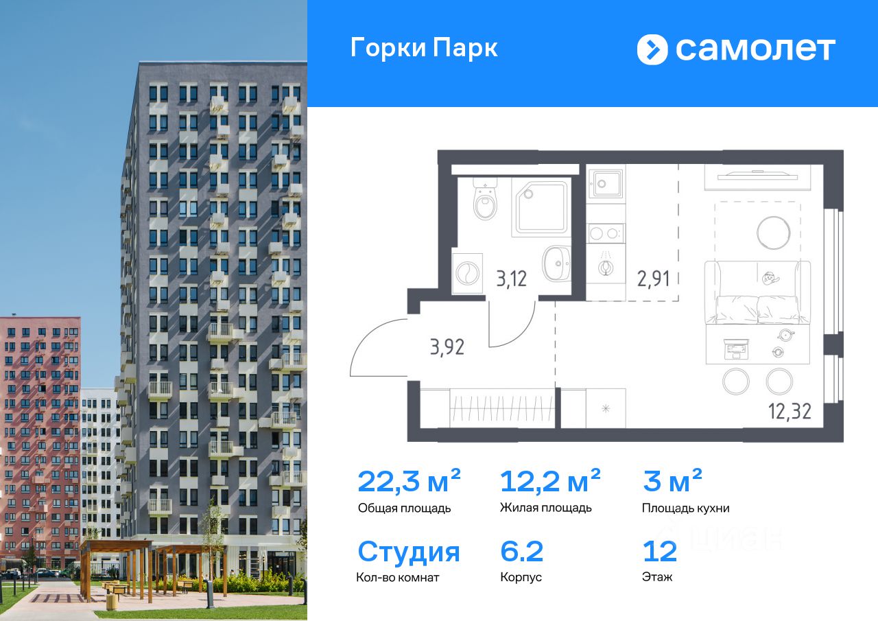 Строим кварталы для жизни с заботой о будущем. Предлагается квартира студия комфорт-класса 22,27 кв.м в корпусе 6.2 на 12 этаже, в ЖК ''Горки Парк'' Квартира с чистовой отделкой. Доступность дополнительных опций уточняйте у застройщика.