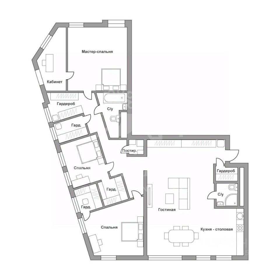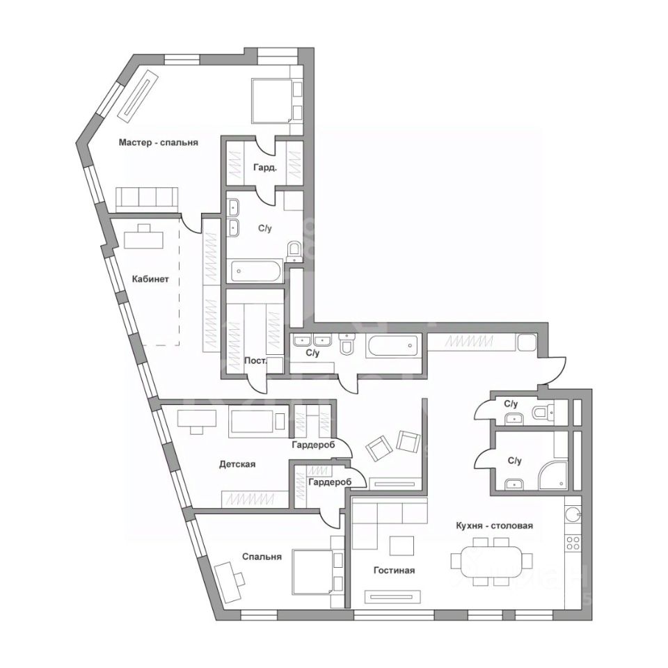 Просторная 5-комнатная квартира площадью 193 кв.м находится в новом премиальном доме по адресу: Садовническая набережная, 80.