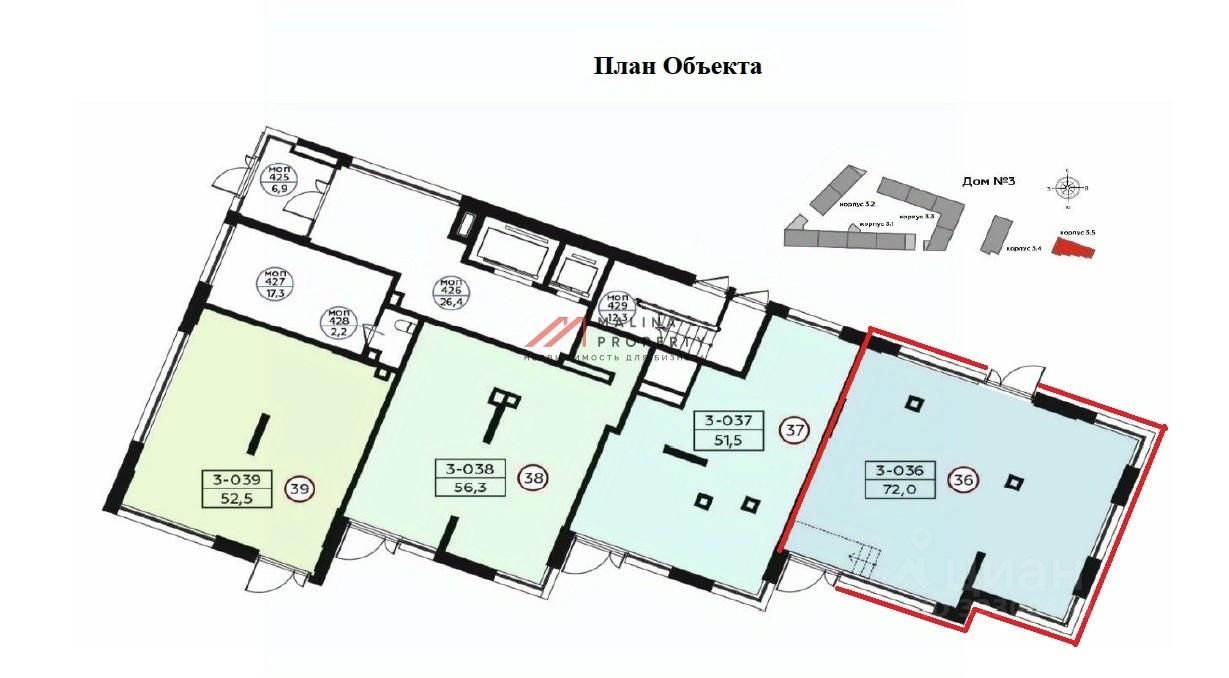 Помещение 72 м2, располагается на 1 этаже, открытая планировка, 2 отдельных входа с фасада, высота потолка 4,5 м, витринные окна по фасаду (единственное помещение в ЖК с витринами с трех сторон в ЖК). Электрическая мощность 22 кВт. Вытяжка для общепита предусмотрена. Парковка перед фасадом. Место для размещения рекламы.