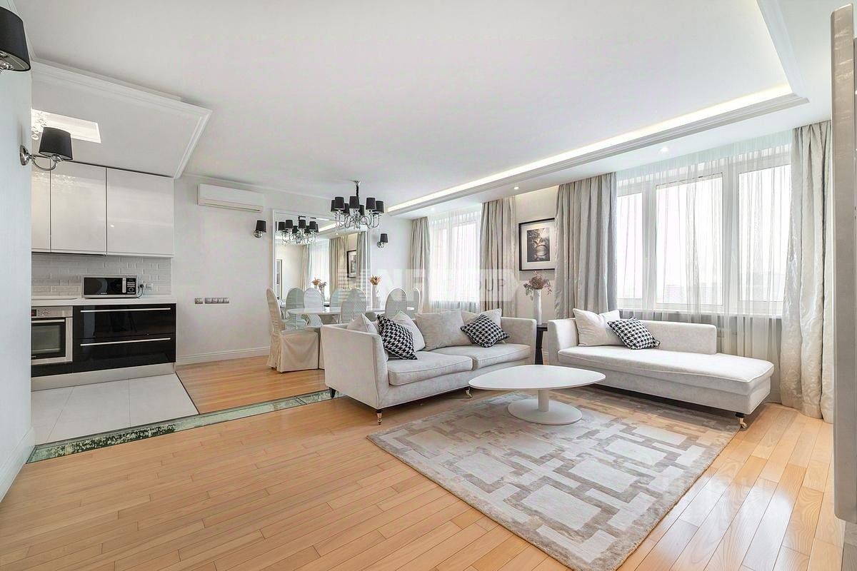 Лот: 98893. Эксклюзивно в продаже только у NF GROUP. В продаже видовая семейная квартира с отделкой в ЖК бизнес-класса ''Дом на Беговой''. Функциональное планировочное решение включает в себя: просторную кухню-столовую-гостиную, мастер-спальню со своей ванной комнатой, две детские спальни, дополнительный санузел. Внутреннее пространство выдержано в стиле современной классики. Из окон открываются завораживающие панорамные виды на город. Высота потолка 3 м. В комплексе предусмотрен подземный паркинг. ''Дом на Беговой'' - жилой комплекс бизнес-класса с удобным выездом на ТТК, Звенигородское шоссе и доступом к ММДЦ ''Москва-Сити''. Огороженная территория, развитая инфраструктура, 10 минут до центра Москвы.