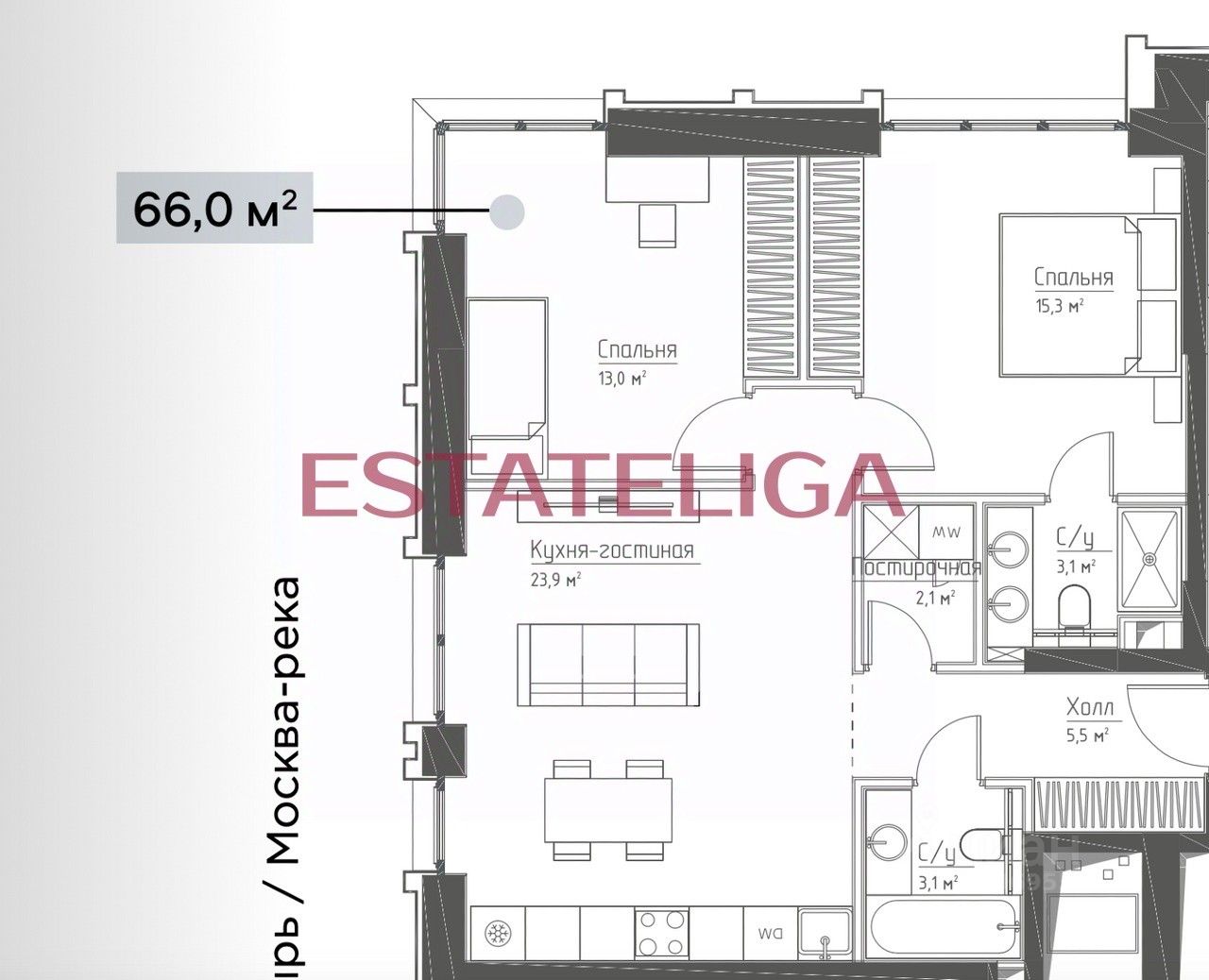 2 изолированная комнат, кухня-гостиная, гардеробная, два с/у, холл. Панорамные виды из окна! Просторная планировка!
