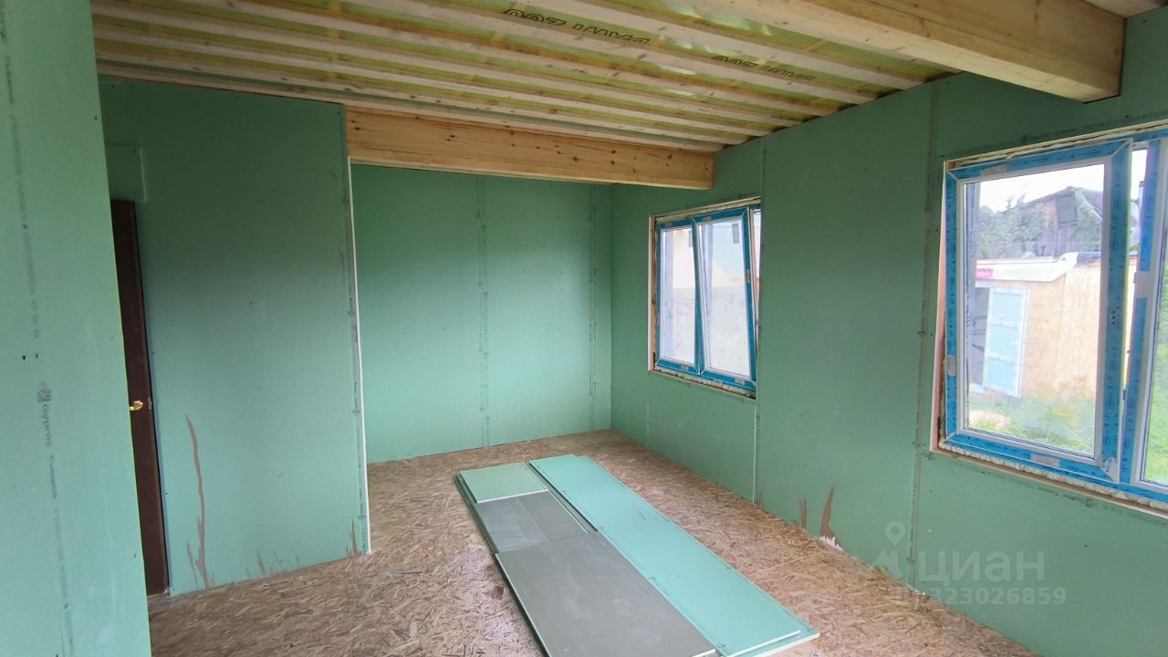 Дом построен в 2025 году по каркасной технологии. Пол и потолок утеплены 200мм. Стены 150мм. Отделка имитация бруса/гипсокартон.