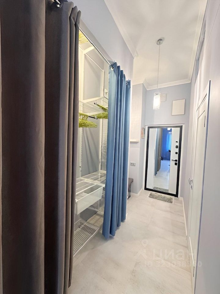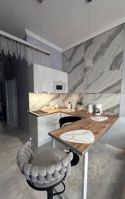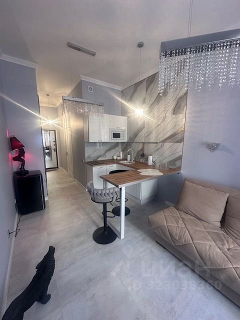 Уютная квартира-студия с высокими потолками в жилом комплексе ''Гармония Парк''. Выполнена дизайнерская отделка с использованием современных материалов. Установлена премиальная техника. Интерьер оформлен в приятных светлых тонах, благодаря панорамным окнам и высоким потолкам пространство наполнено светом. Функциональное зонирование пространства: квартира поделена на зону кухни-гостиной, спальную зону, гардеробную. Из окна открывается вид на Петропавловскую Церковь.