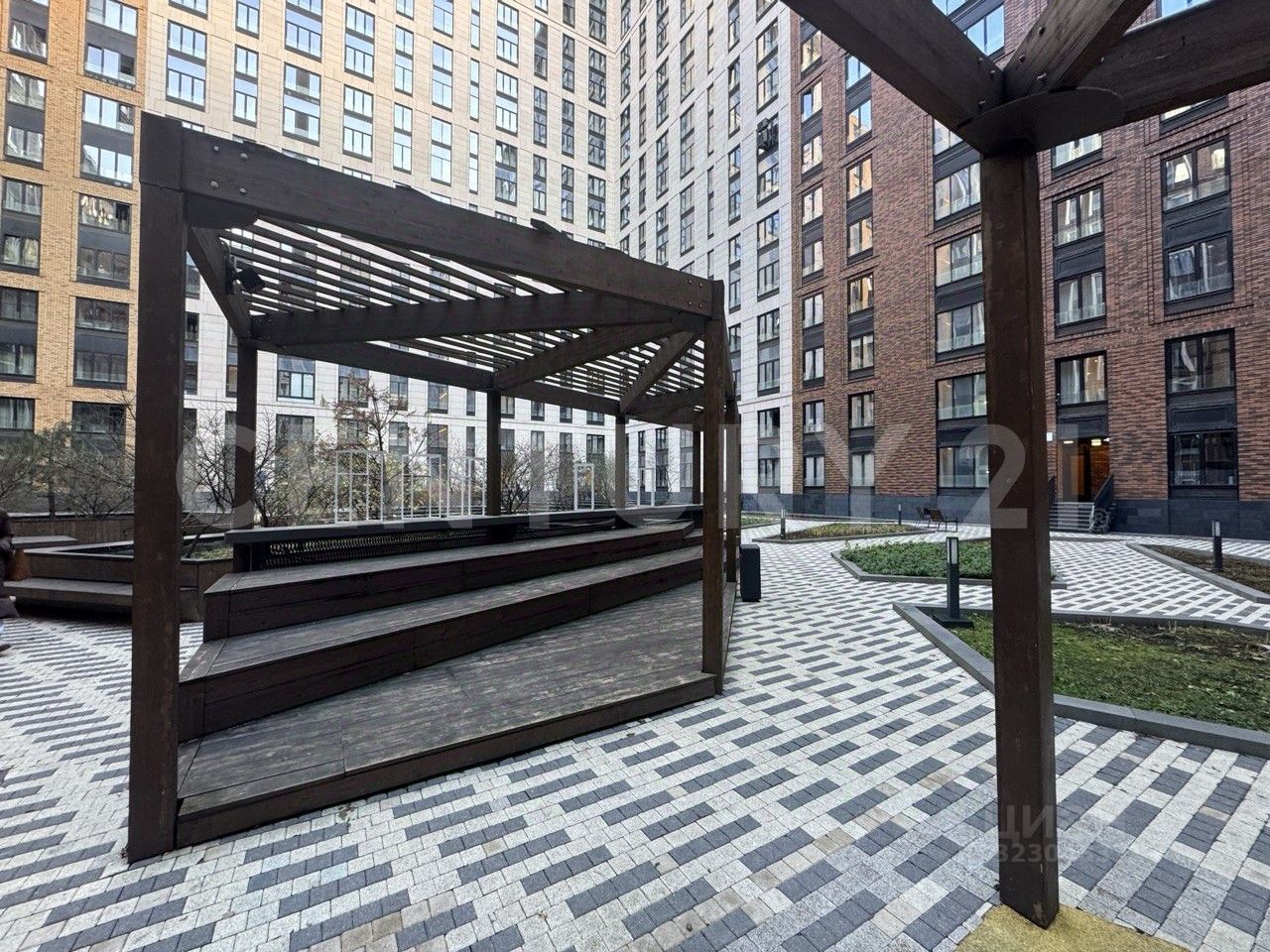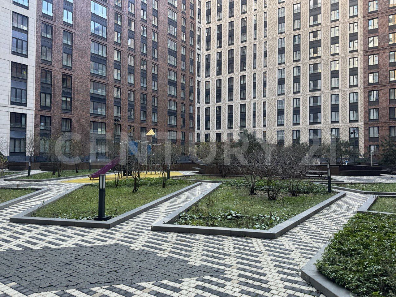 Высокий видовой этаж с видом в закрытый тихий внутренний двор с ландшафтным дизайном.