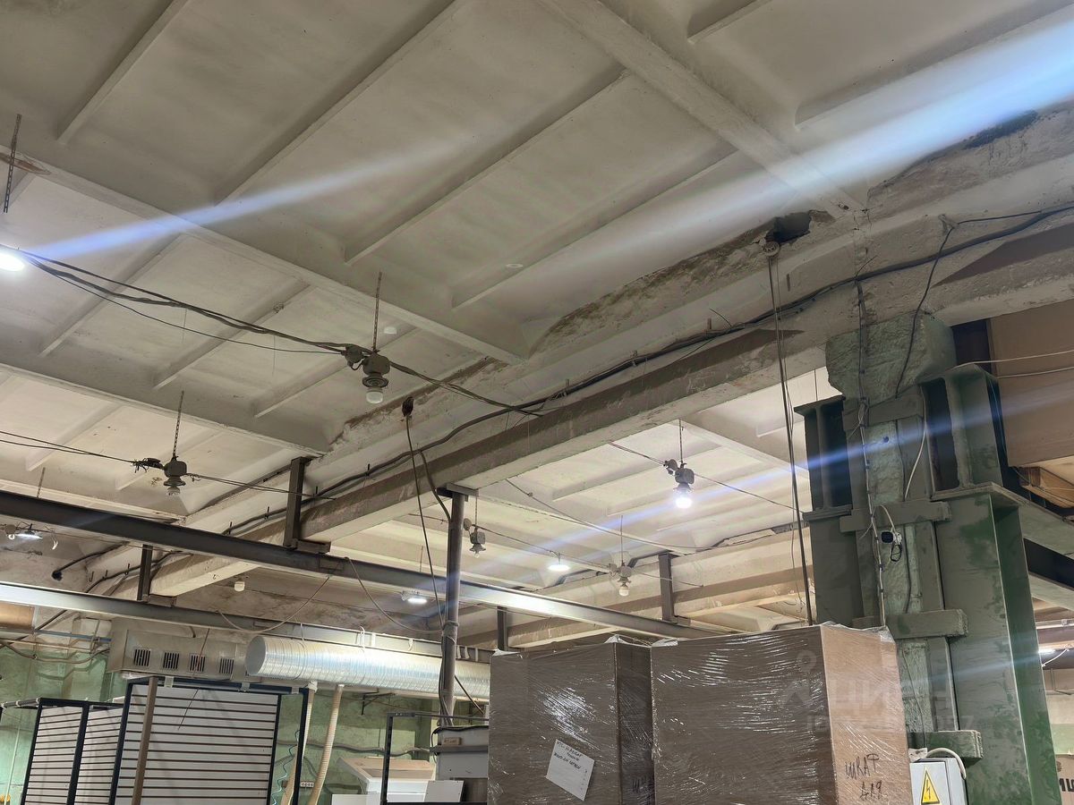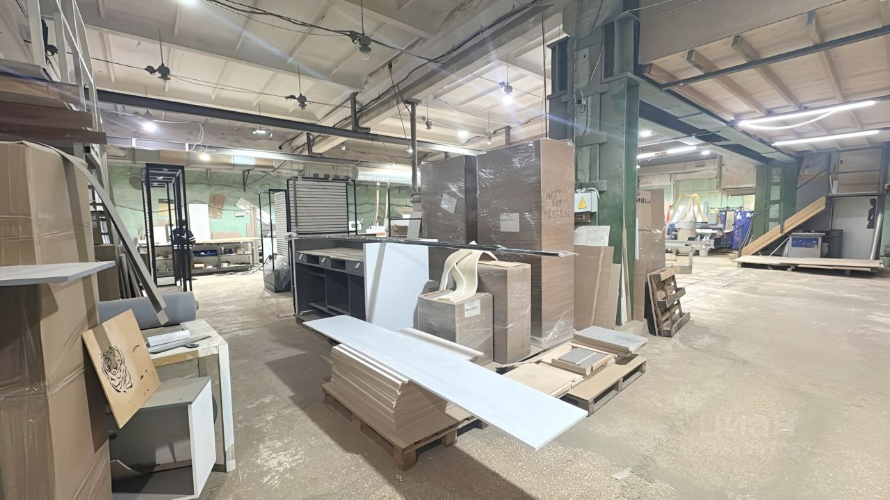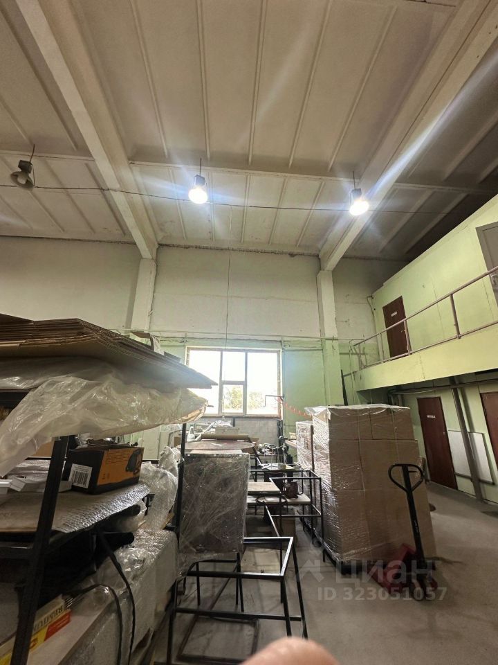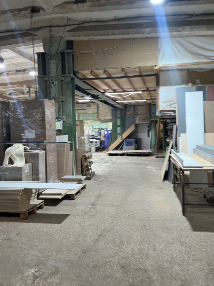 2) Здание склада, в том числе - административное помещение — 800 м² (Высота потолков 6 метров, сейчас там производство) Материал стен: Монолит. Год ввода: Не указан. Материал фундамента: Бетонные блоки. Перекрытия: Железобетонные. Кровля: Мягкая. Полы: Бетонные. Отделка: Оштукатурено по сетке.