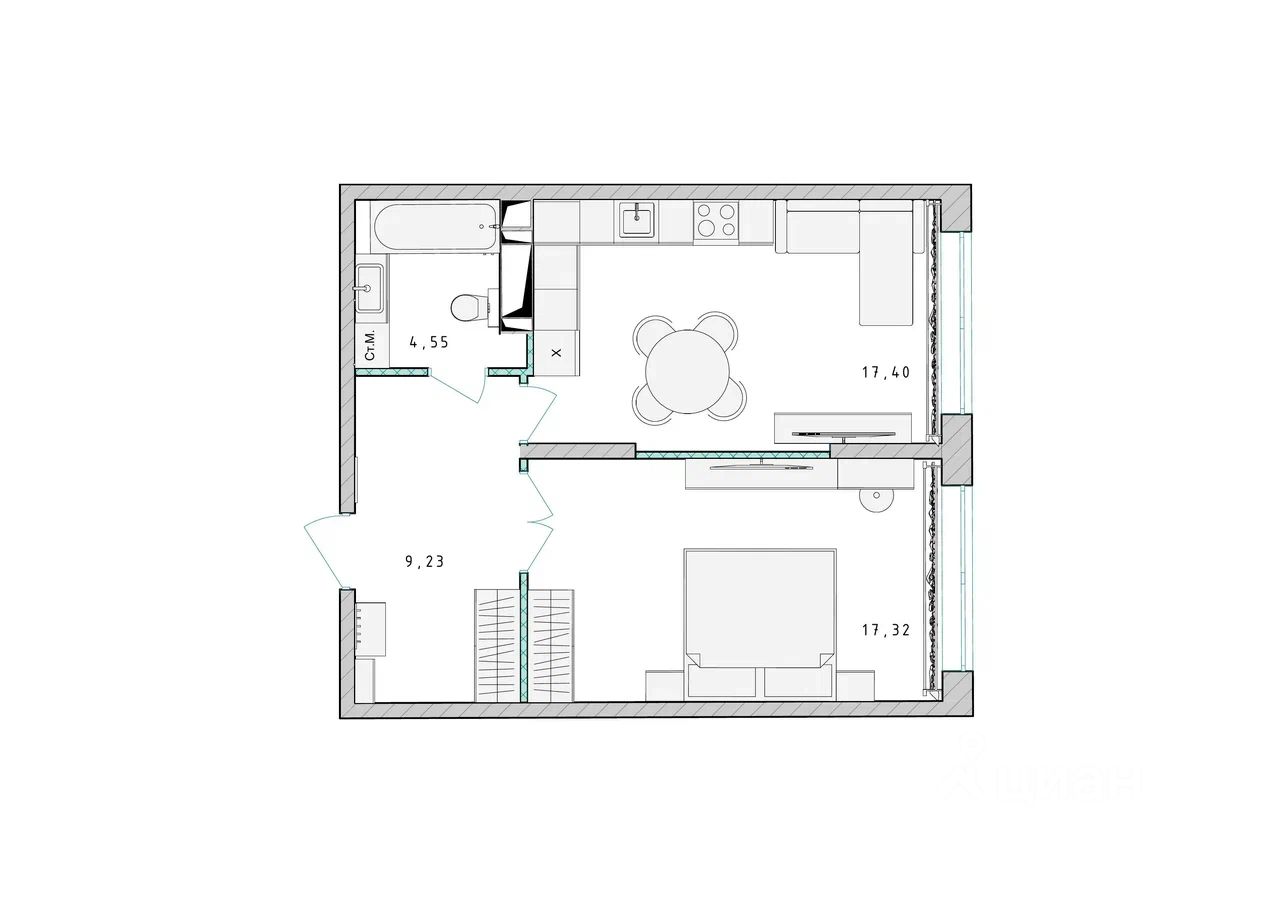 Продаётся 1-комнатная квартира в сданном доме (Корпус 2), срок сдачи: 4-кв. 2023, общей площадью 48.50 кв.м., на 13 этаже.