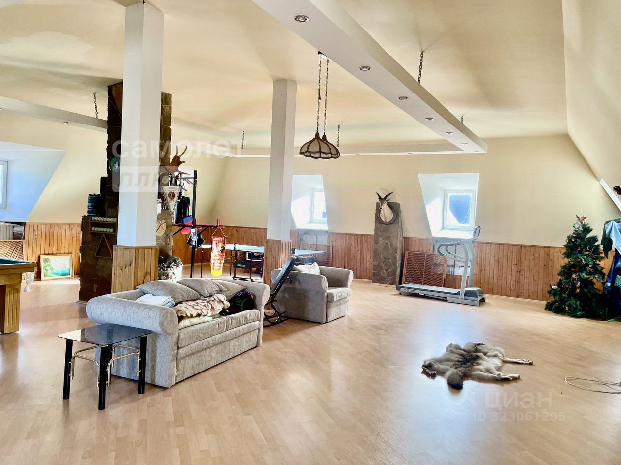 В доме: 5 спален, кабинет, кухня с гостиной, 4 санузла, каминный гостевой зал, мансарда с бильярдом, теннисным столом и спортивным залом.