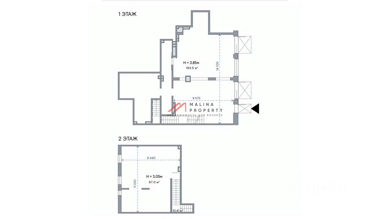 Двухуровневое помещение 301,9 м2 (194,5 м2 на 1 этаже и 107,4 м2 на 2 этаже), открытая планировка, отдельный вход с фасада, высота потолка 3,05 - 3,85 м, витринные окна по фасаду. Место для размещения рекламы.