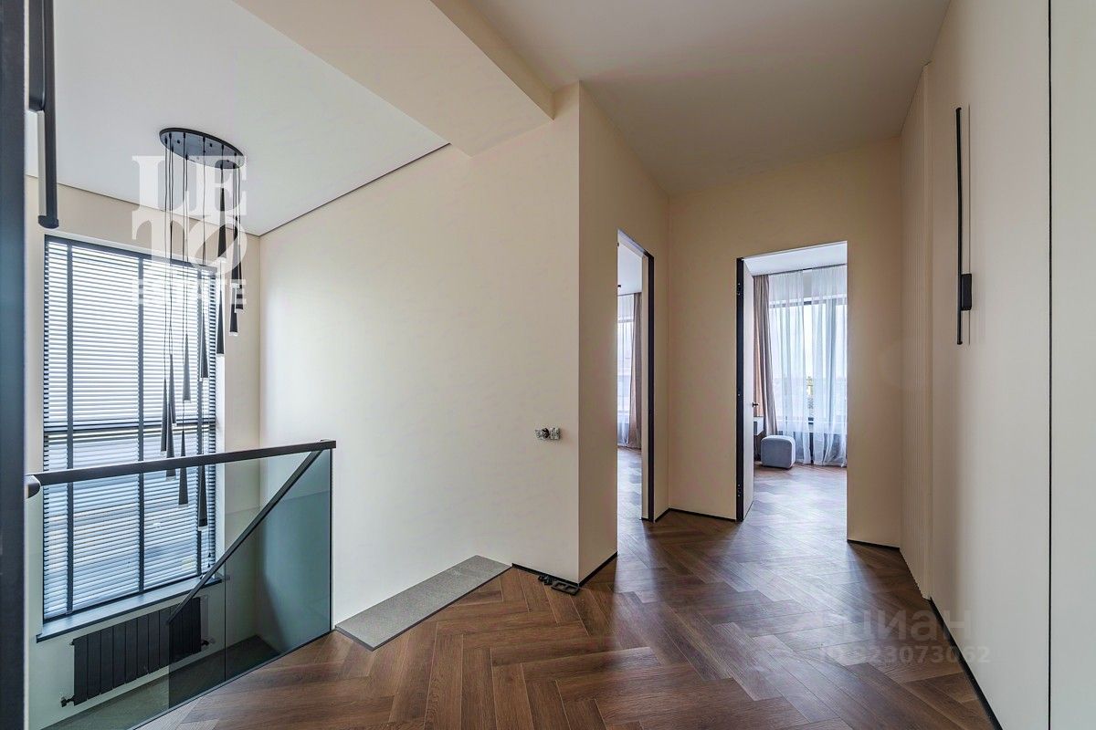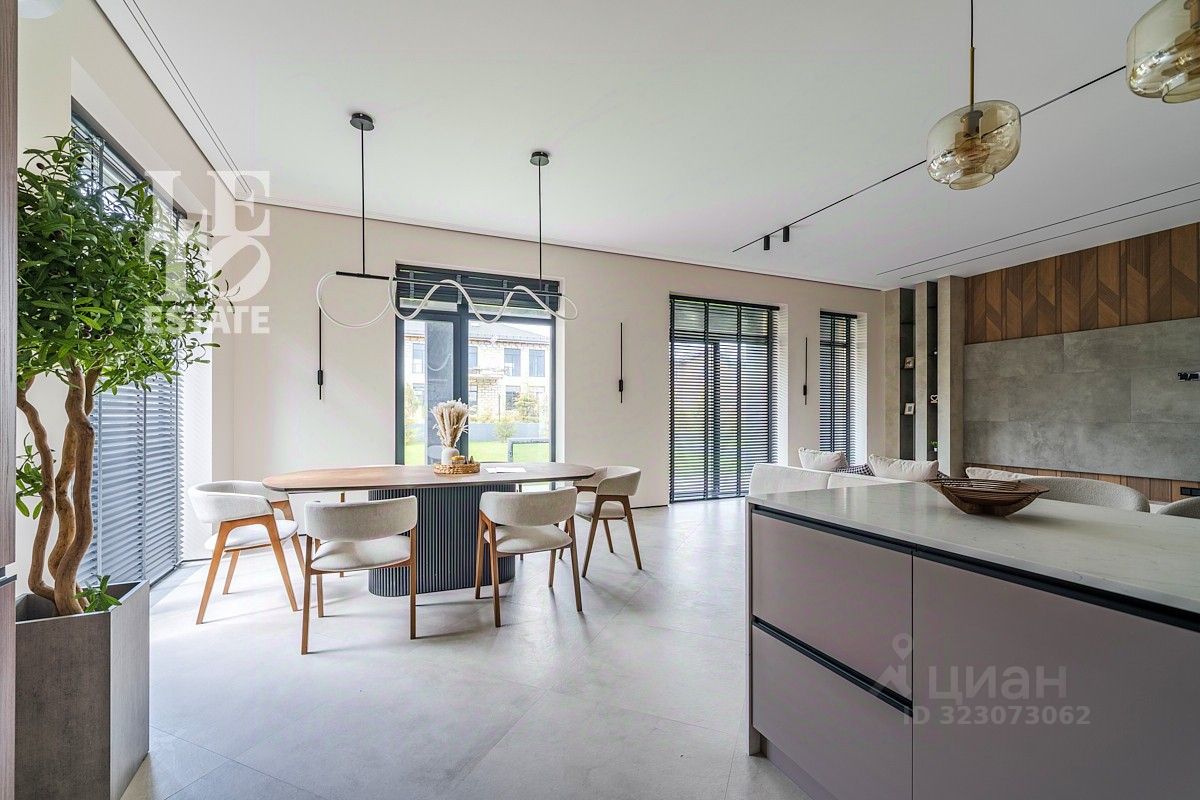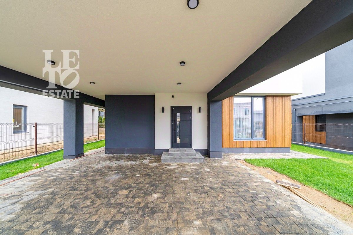Основные преимущества дома: •Два полноценных этажа, 4 спальни, включая одну на первом этаже — удобно для пожилых членов семьи или гостей. •Мастер-блок с собственной спальней, просторной гардеробной и отдельным санузлом с ванной и душем — личное пространство, где можно отдохнуть. •Гостиная с камином — уютное место для семейных вечеров. •Кухня-столовая с современной встроенной техникой и выходом на открытую террасу — для семейных обедов и встреч с друзьями.