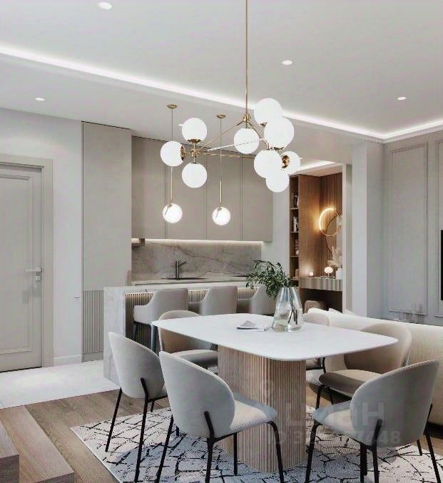 Студия расположена на шестом этаже, проектная площадь — 34,5 кв.м. Пространство организовано удобно: большая комната с кухонной зоной и тремя панорамными окнами, совмещённый санузел площадью 3,76 кв.м., прихожая. Потолки высокие, планировка продуманная, отделка выполнена по стандарту CLASSIC. В квартире установлены инженерная или паркетная доска в жилой зоне, керамическая плитка в прихожей и санузле, тёплый пол в санузле. Потолки — гипсокартон под окраску или матовое натяжное полотно. Стены в санузлах выложены плиткой до потолка, в жилых зонах — армирующие обои под покраску. Установлены межкомнатные двери, входная металлическая дверь с отделкой по дизайн-проекту. Санузел оборудован инсталляцией с подвесным унитазом, раковиной с тумбой, смесителями. Предусмотрена разводка инженерных систем и приборы учёта. Работает система ''умный дом''.