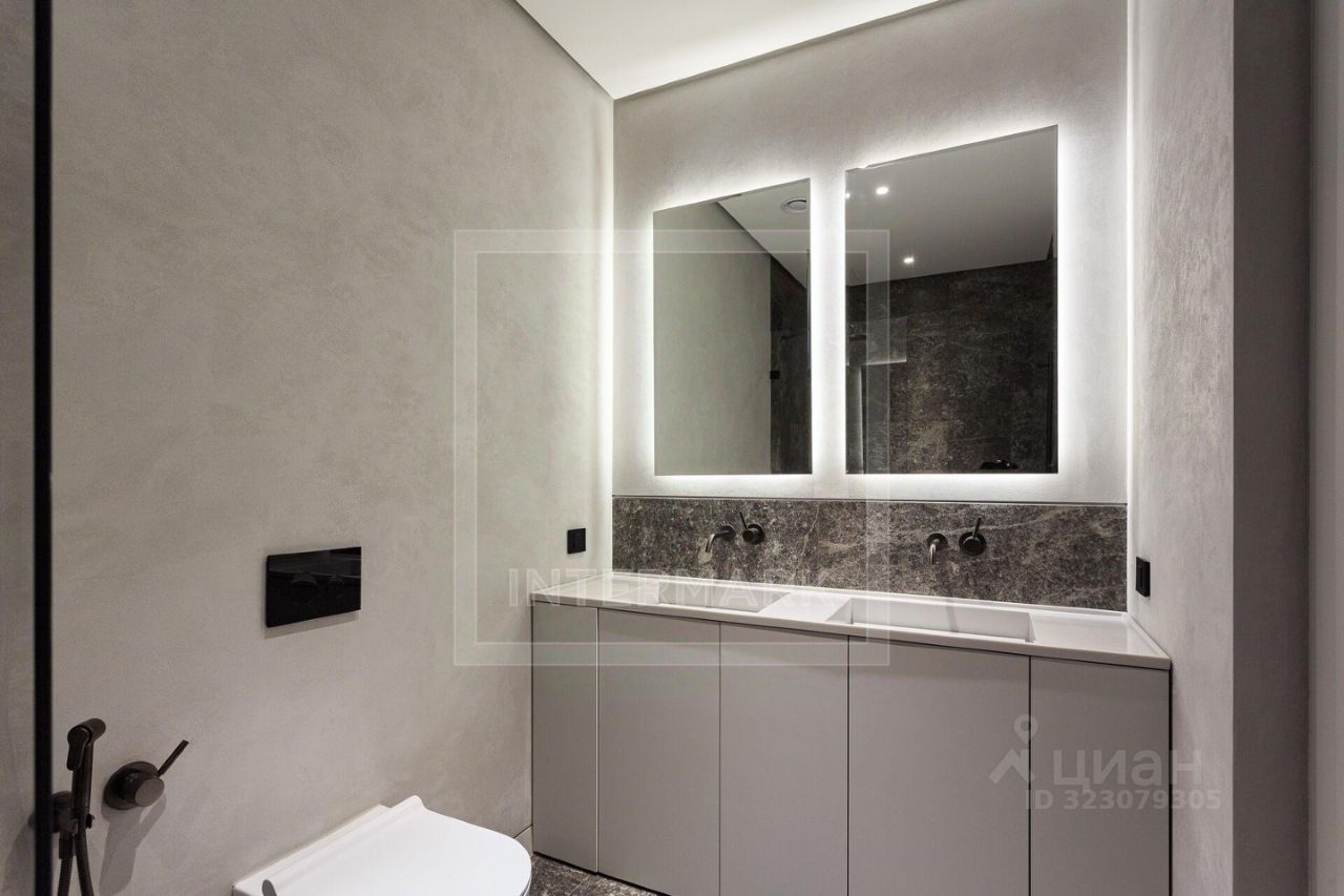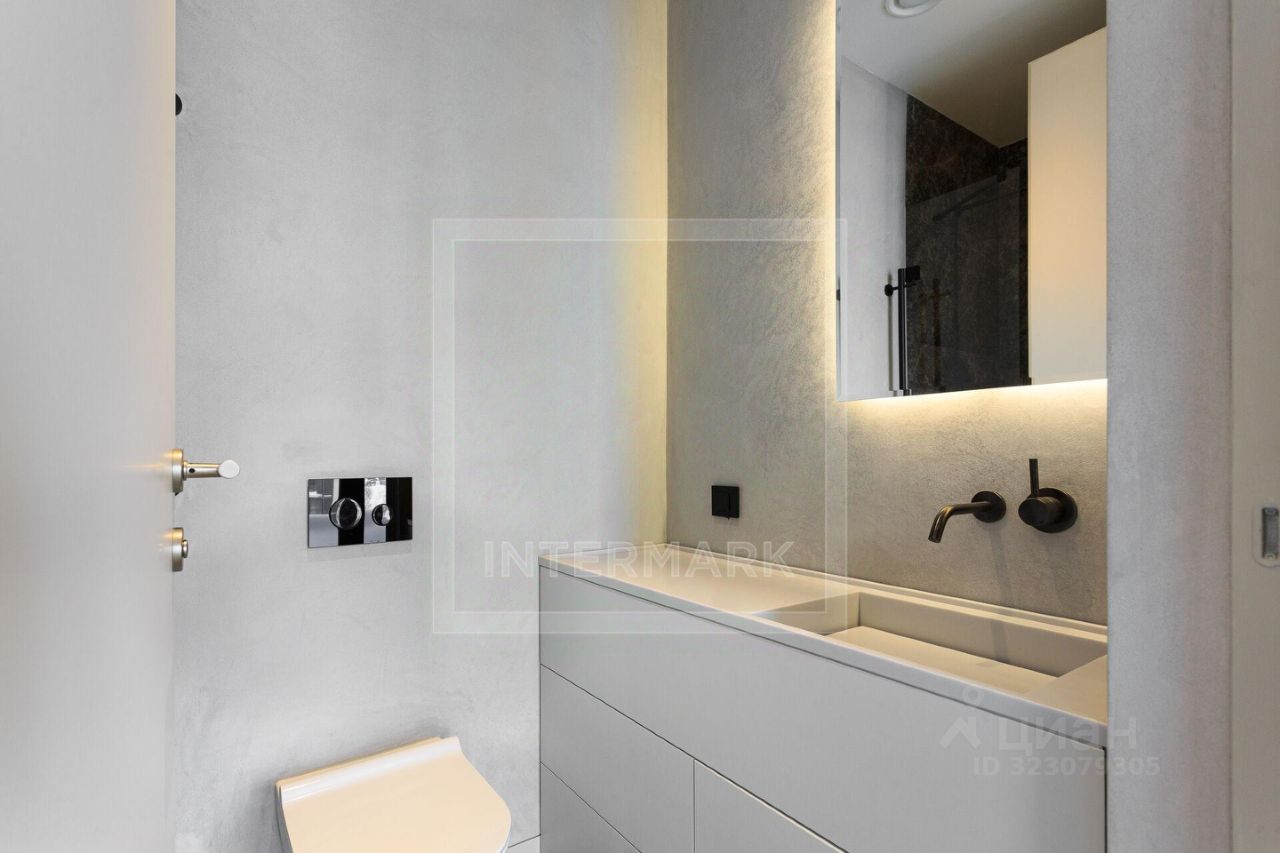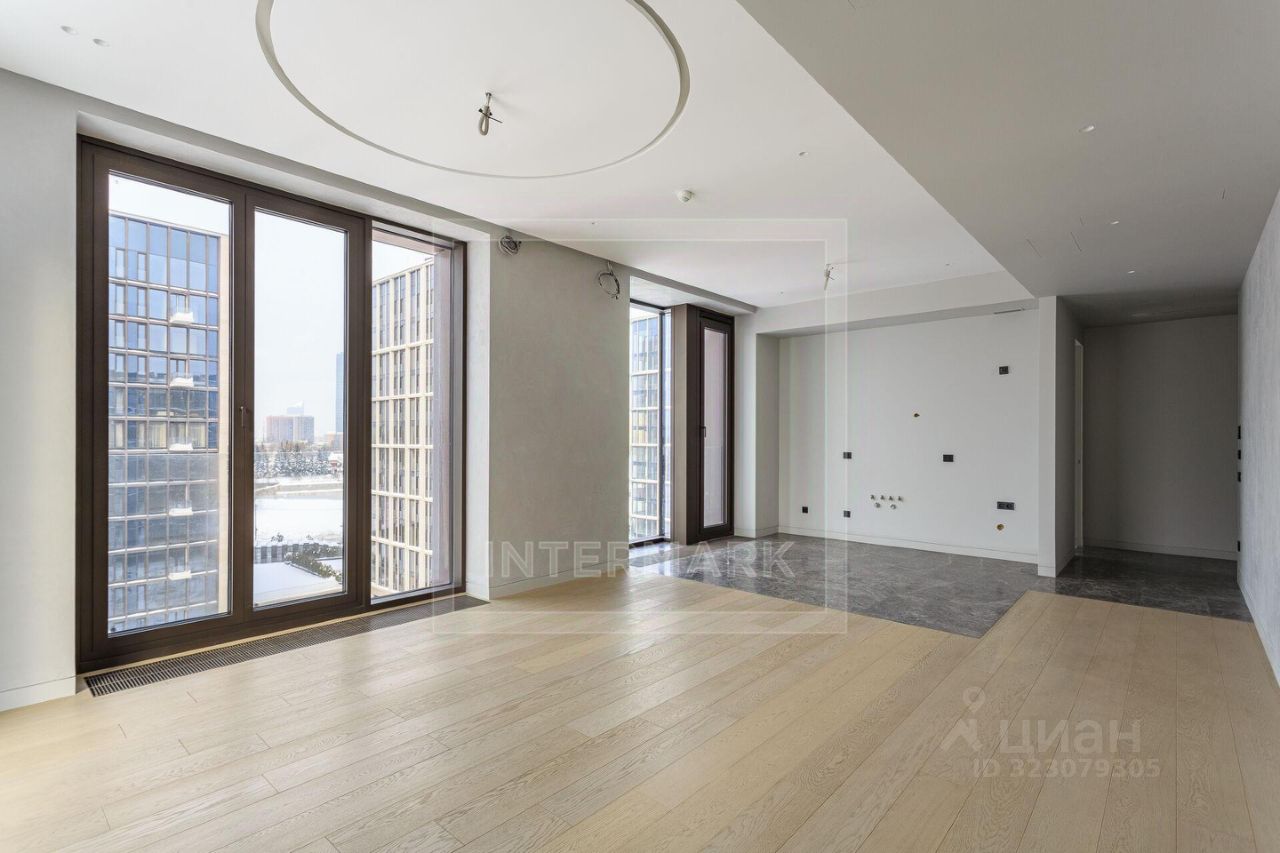 В интерьере установлены высокие портальные двери, выполнена премиальная отделка в стилистике неодеко - спокойная цветовая гамма визуально расширяет пространство, объединяя его с видами на главную доминанту района. Бесшумная работа центральных систем кондиционирования и фильтрации воздуха создает идеальный микроклимат для уединенной жизни. Высота потолков в квартире 3,3 м.