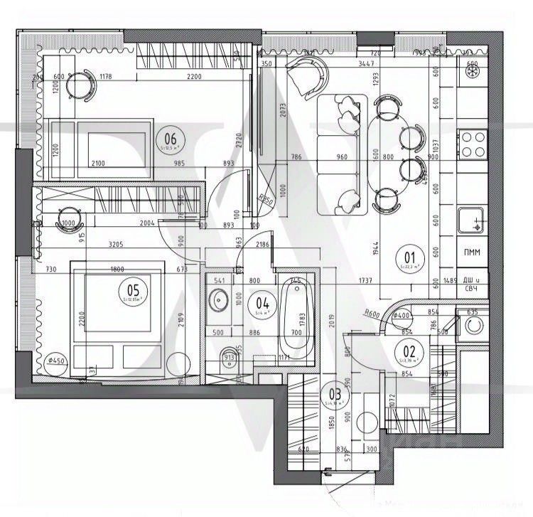 Планировочное решение предусматривает две изолированные комнаты, две комнаты по 12,5 кв.м., а также кухня-гостинная 22 кв.м.. Качественная отделка, высокие потолки. Выполнена разводка электрики, сантехники. Качественные напольные покрытия. Абсолютно новая мебель, кухонный гарнитур со встроенной техникой и предметы интерьера входят в стоимость.