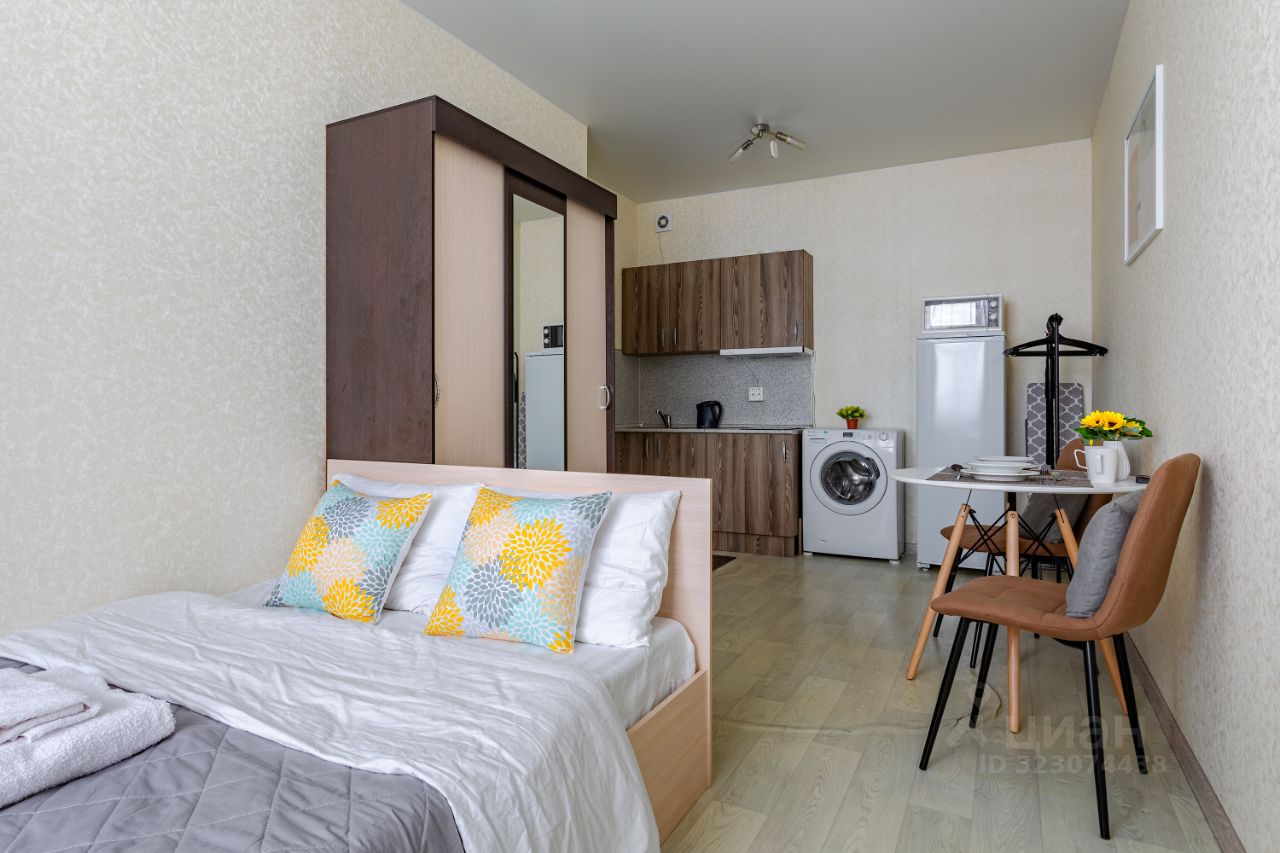 Всё для жизни: - Удобная кровать с ортопедическим матрасом - Просторный шкаф и рабочая зона - ЖК-телевизор и быстрый Wi-Fi - Стиральная машина, фен, утюг - Полностью оборудованная кухня: плита, микроволновка, чайник, посуда
